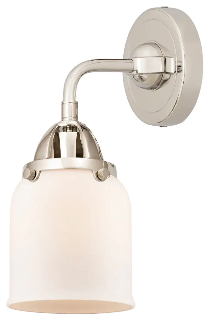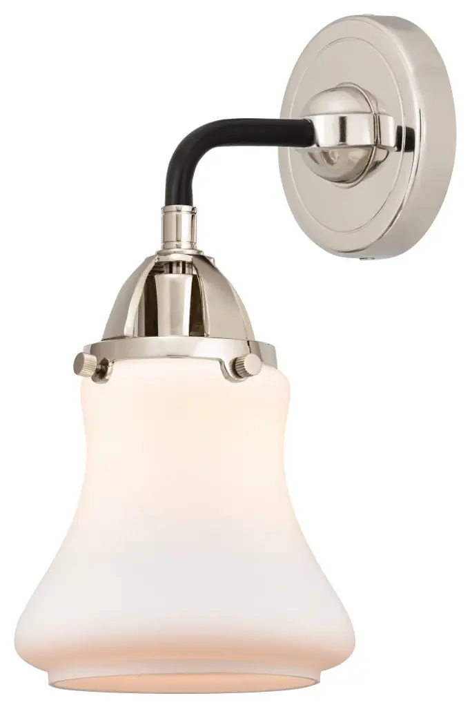 The Nouveau 2 is a highly detailed work of art that draws the eyes into its base and arm detail. The true show stopping piece is the beautifully curved glass shade that''s sure to wow you and guests alike.Features:Fixture can be hung with bulbs facing up or down4.5 inch 2mm heavy cast backplateDistance from outlet opening to top of fixture 2.25 inchesRated for 100 watt maximumUL/CUL Damp RatedCompatible with Incandescent, LED, Fluorescent and Halogen bulbsNumber of Bulbs: 1Bulb Wattage: 3.5Bulb Type: LEDBulb Included: IncludedVoltage: 120Finish: Black Polished Nickel, Matte White