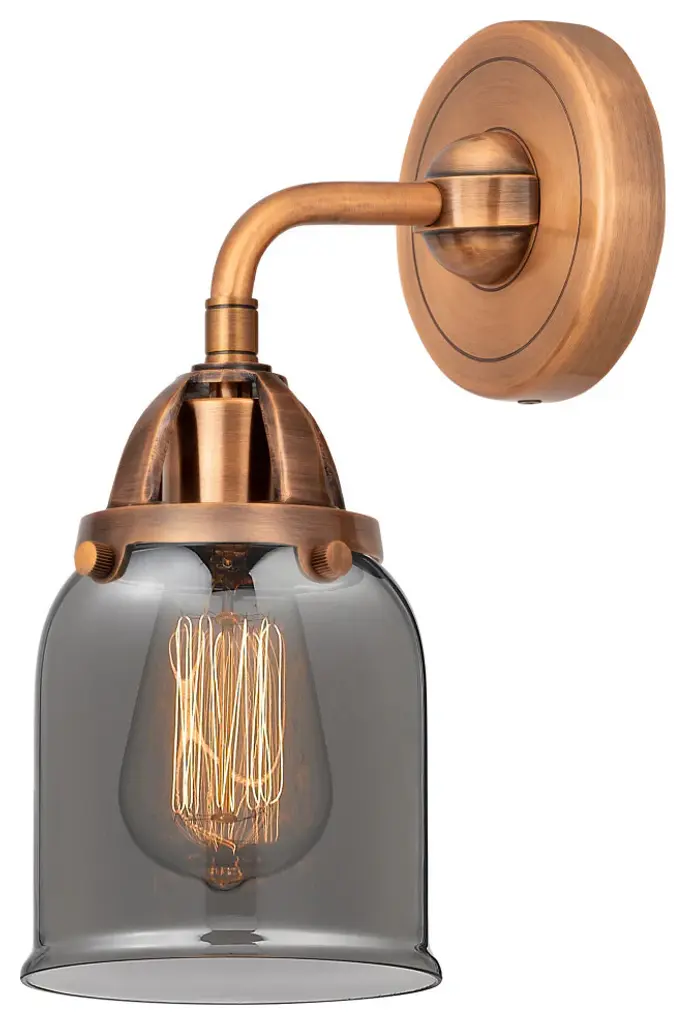 The Nouveau 2 is a highly detailed work of art that draws the eyes into its base and arm detail. The true show stopping piece is the beautifully curved glass shade that''s sure to wow you and guests alike.Features:Fixture can be hung with bulbs facing up or down4.5 inch 2mm heavy cast backplateDistance from outlet opening to top of fixture 2.25 inchesRated for 100 watt maximumUL/CUL Damp RatedCompatible with Incandescent, LED, Fluorescent and Halogen bulbsNumber of Bulbs: 1Bulb Wattage: 60Bulb Type: IncandescentBulb Included: Not IncludedVoltage: 120Finish: Brushed Brass, Plated Smoke