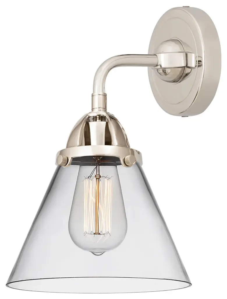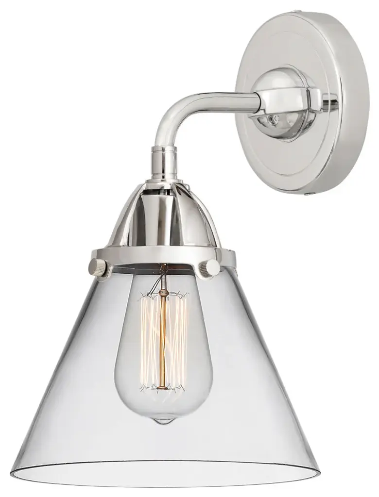 Small Cone Sconce, Polished Nickel, Clear, Clear