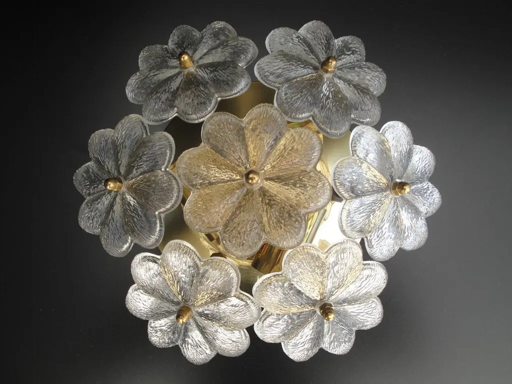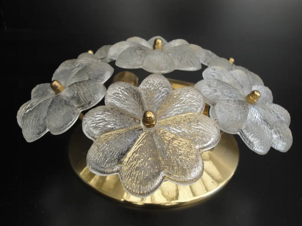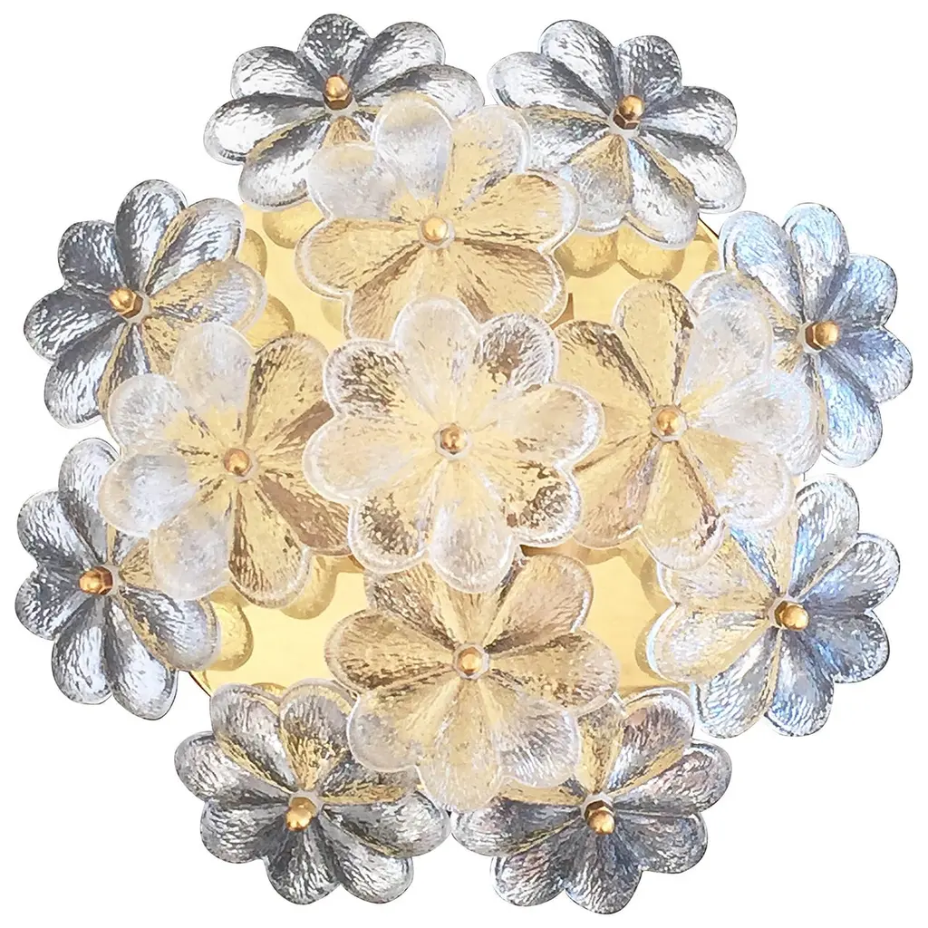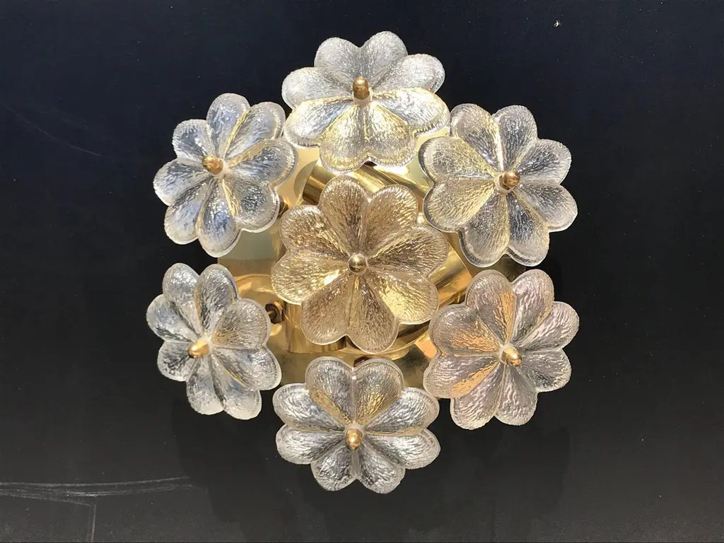 Small Ernst Palme floral glass flush mount sconce. Requires three E14 base up to 40 watt bulbs.Also available in X Large, Large and Medium sizes.Offered at Gallery Girasole in North Hollywood.