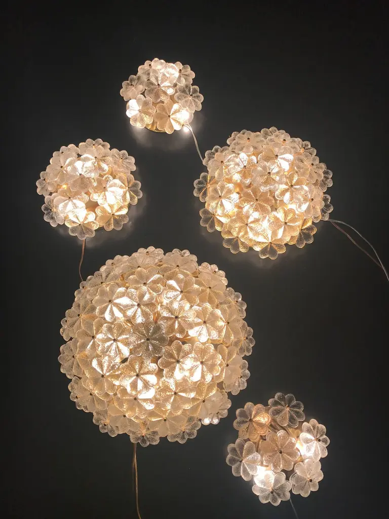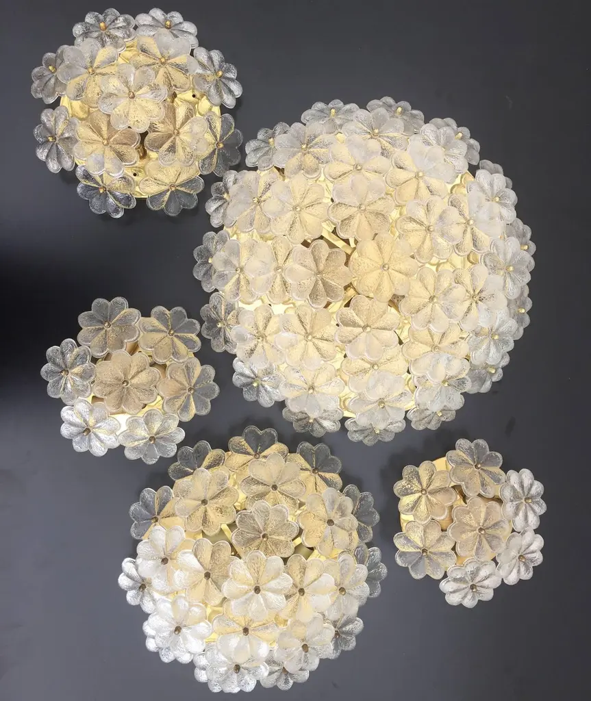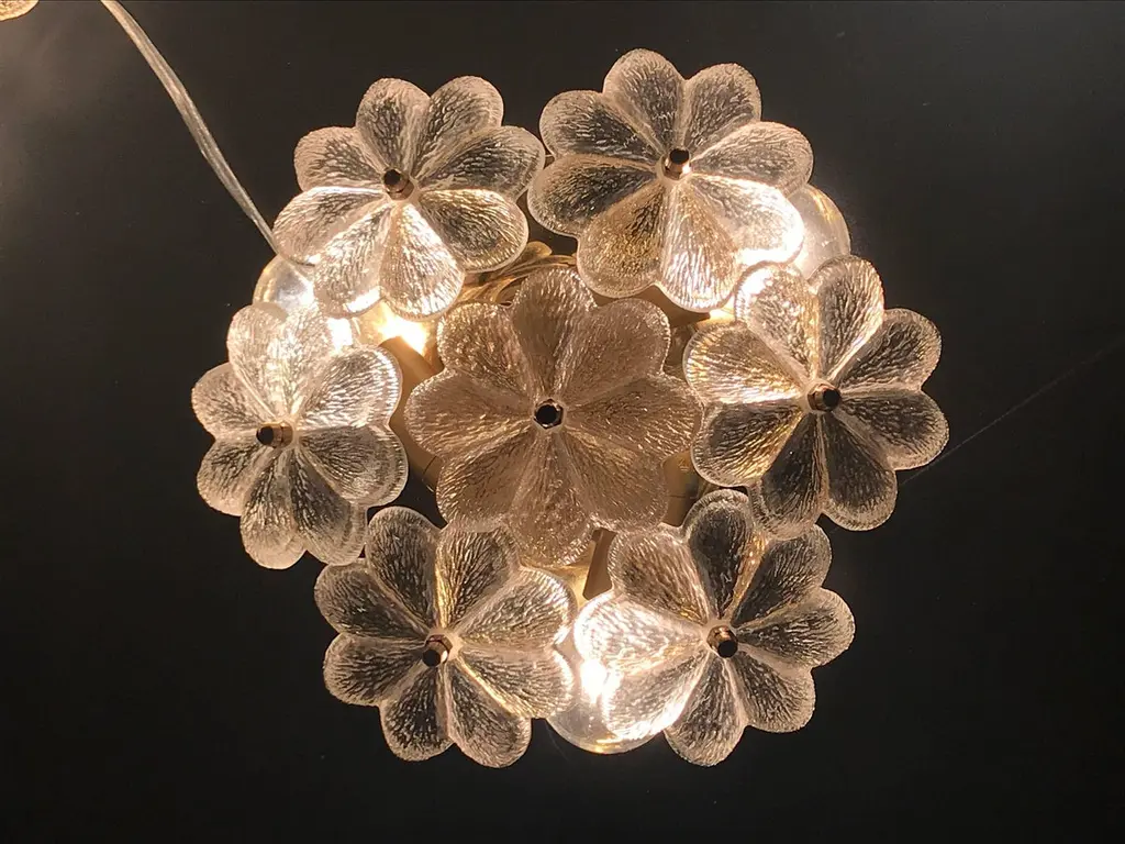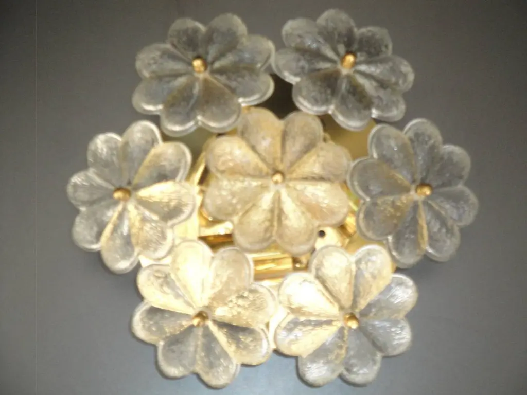 Small Ernst Palme floral glass flush mount sconce. Requires three E14 base up to 40 watt bulbs.Also available in X Large, Large and Medium sizes.Offered at Gallery Girasole in North Hollywood.