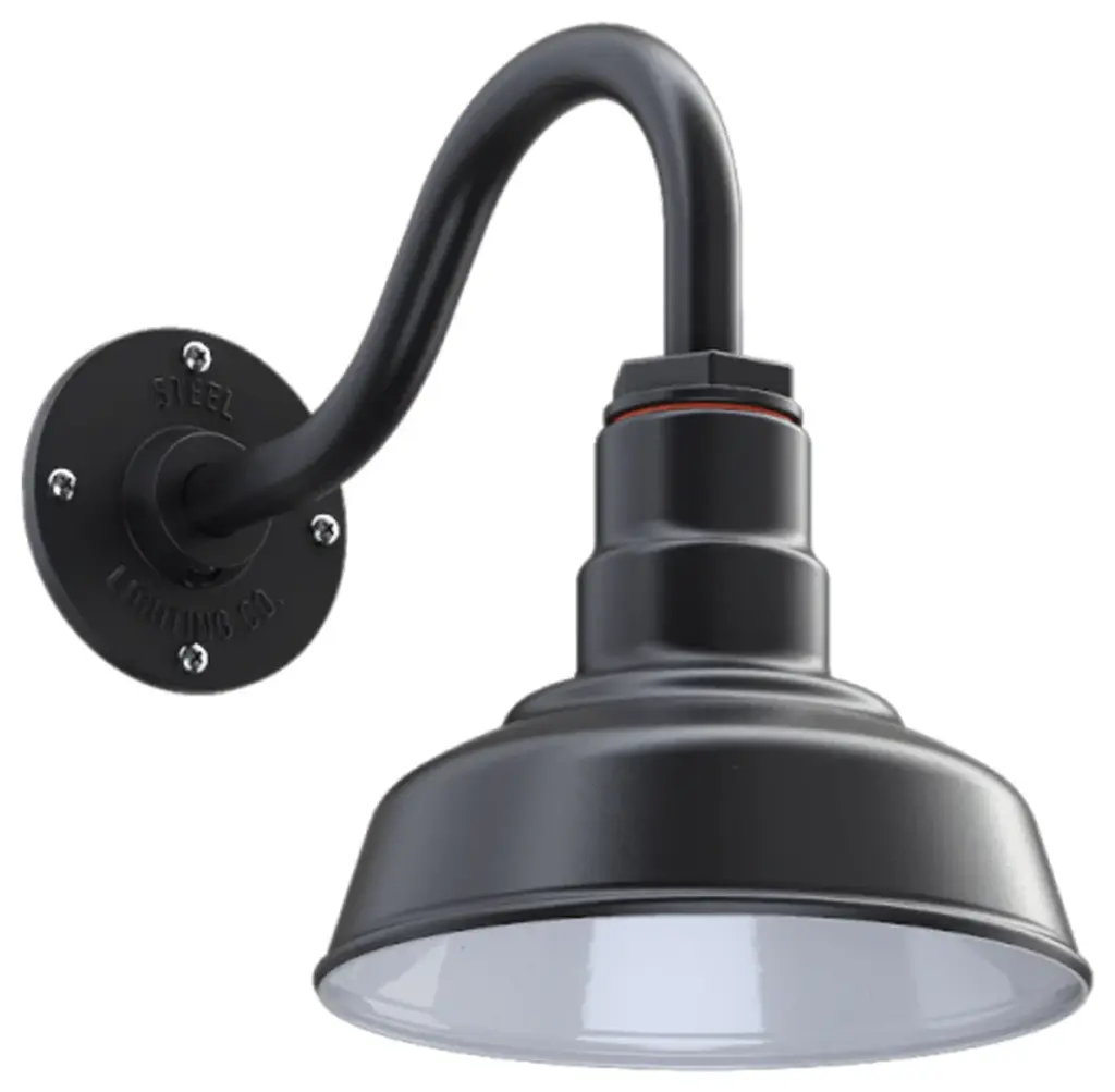 This small-sized modern farmhouse barn light is full of character and purpose. The Hawthorne is comparable to the size of a barn lighting sconce or hallway light which can be used to illuminate walkways and accent walls or as the perfect addition to your modern farmhouse style. The Hawthorne is a sturdy fixture that comes standard with an 8" dome and it can be used in a million different ways wherever you see fit. Despite its size, The Hawthorne can make a big statement in your space, simply pick between a 6" straight arm, 11" straight arm, 11"gooseneck, 16" gooseneck, or 23" gooseneck, then order, install, and feel at home under Steel Lighting.When you''re crafting a space full of quality and character, this small barn lighting sconce can stand out on its own, or quietly pull everything together in style. As with every light we craft, The Hawthorne is handmade from heavy-duty steel, then powder coated for the high quality, long-lasting finish we all know and love. Pair up multiples of this barn lighting sconce to frame doorways, to partner with bedside tables and vanities, and to bring your story to light, inside or out.