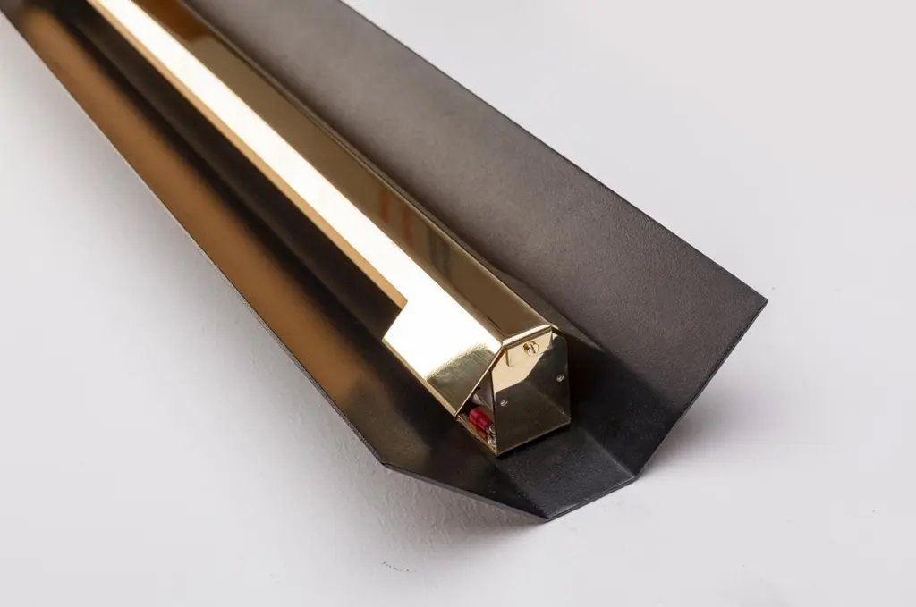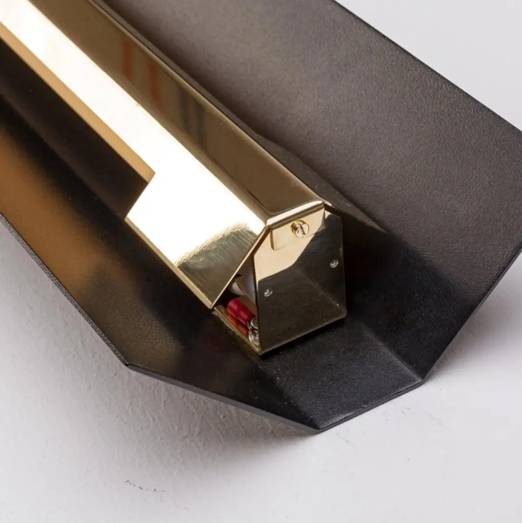 Small Misalliance Ex jet black wall light by Lexavala.Dimensions: D 16 x W 70 x H 8 cmMaterials: powder coated shade with details made of brass or stainless steel.There are two lenghts of socket covers, extending over the LED. Two short are to be found in Suspended and Surface, and one long in the Wall model. Customization available. Choosing a different cover than the one in stock involves an additional fee.Hello! My name is Jakuband I’m glad you’re here.Light allows us to create everything.It illuminates the paths we walk and the tables we write our tales on.I have always wanted to create somethingthat standouts from the first time it shines and maintains timeless standards.Every piece released by this companyis a carefully touched product ment to tell something.One isn’t just a lamp. It’s a jewelery with a collection of emotions.I strongly believe that here is where your strivefor a key element of decor could end.Combining efficiency of industrial workspace and magnificanceof handcrafted materials there was only one outcome – Lexavala.Minimalism with boundless range.