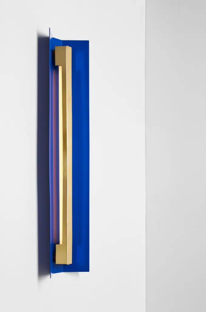 Small Misalliance Ex ultramarine wall light by LexavalaDimensions:D 16 x W 70 x H 8 cmMaterials: powder coated shade with details made of brass or stainless steel.There are two lenghts of socket covers, extending over the LED. Two short are to be found in Suspended and Surface, and one long in the Wall model. Customization available. Choosing a different cover than the one in stock involves an additional fee.Hello! My name is Jakuband I’m glad you’re here.Light allows us to create everything.It illuminates the paths we walk and the tables we write our tales on.I have always wanted to create somethingthat standouts from the first time it shines and maintains timeless standards.Every piece released by this companyis a carefully touched product ment to tell something.One isn’t just a lamp. It’s a jewelery with a collection of emotions.I strongly believe that here is where your strivefor a key element of decor could end.Combining efficiency of industrial workspace and magnificanceof handcrafted materials there was only one outcome – Lexavala.Minimalism with boundless range.My company delivers practical art. I make sure every lampaccepted in your living space is going to become a worthy part of your story.