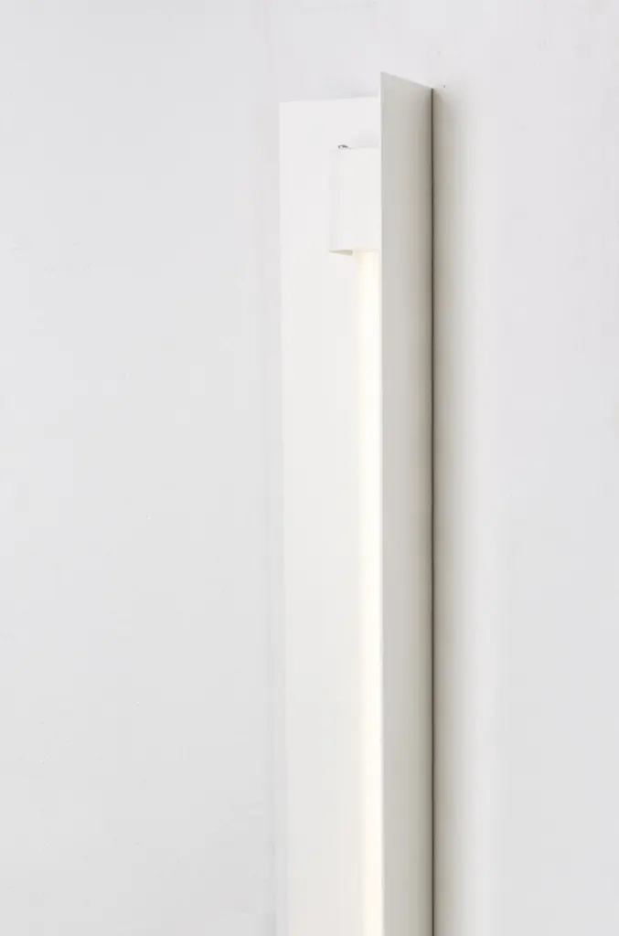 Small Misalliance ral pure white wall light by LexavalaDimensions: D 16 x W 70 x H 8 cmMaterials: powder coated aluminium.There are two lenghts of socket covers, extending over the LED. Two short are to be found in Suspended and Surface, and one long in the Wall model. Customization available. Choosing a different cover than the one in stock involves an additional fee.Hello! My name is Jakuband I’m glad you’re here.Light allows us to create everything.It illuminates the paths we walk and the tables we write our tales on.I have always wanted to create somethingthat standouts from the first time it shines and maintains timeless standards.Every piece released by this companyis a carefully touched product ment to tell something.One isn’t just a lamp. It’s a jewelery with a collection of emotions.I strongly believe that here is where your strivefor a key element of decor could end.Combining efficiency of industrial workspace and magnificanceof handcrafted materials there was only one outcome – Lexavala.Minimalism with boundless range.My company delivers practical art. I make sure every lampaccepted in your living space is going to become a worthy part of your story.