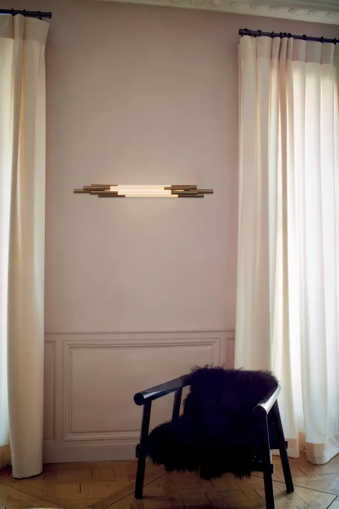 Small Org wall lamp by Sebastian SummaDimensions: D 7.3 x W 8.5 x H 105cmMaterials: aluminum, opaline glassAvailable in 2 sizes: 105cm, 150cm.All our lamps can be wired according to each country. If sold to the USA it will be wired for the USA for instance.Wall lamp in anodised aluminium (gold finish) and opaline glass. Inspired by science fiction and astronomy, Sebastian Summa based his lamp on a shooting star. Elegant and surprisingly classic, Org goes from raw spaces to sophisticated universes. Sebastian Summa, born in Bavaria, studied design at University of Applied Sciences in Potsdam. He lives in Berlin."As a designer, I create objects and spaces. My passion for metals grew during my time as a blacksmith.In the subsequent design studies and through other interesting jobs, I expanded my wealth of experience inmanual handling of various materials. In the studio, my ideas are implemented from prototypes or one-offs to small series."