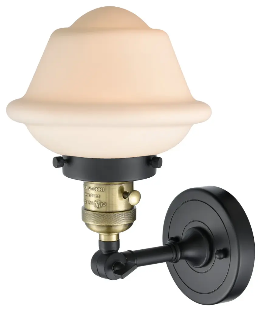 Small Oxford 1-Light Sconce, Black Antique Brass, Glass: Matte White Cased