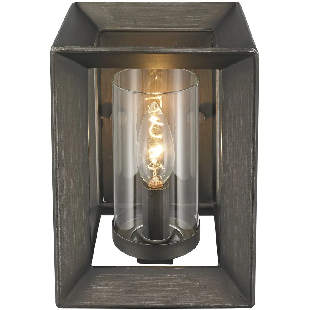 Smyth 1 Light 6 Inch Gunmetal Bronze Wall Sconce Wall Light In Clear Glass, Damp