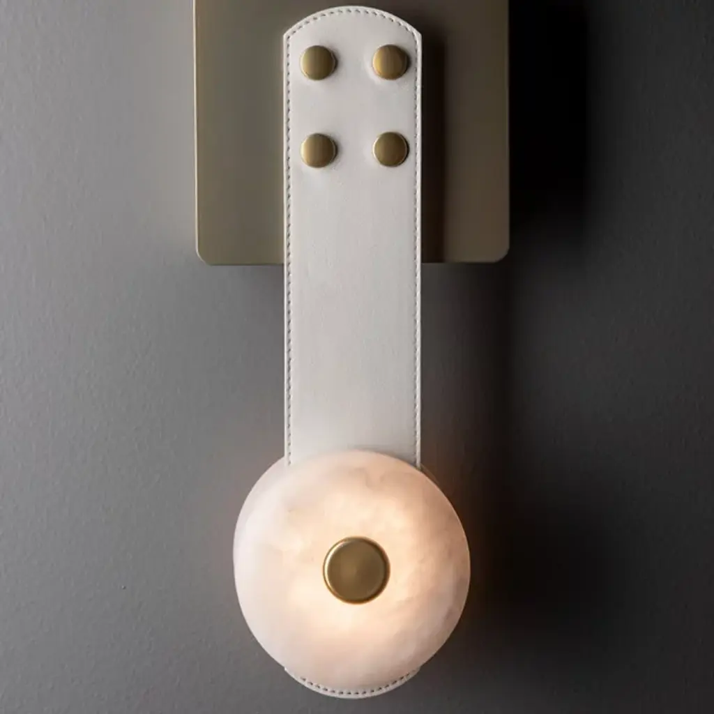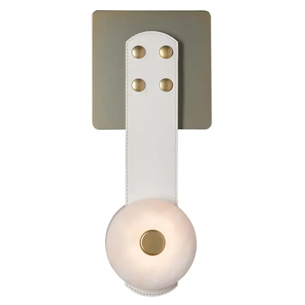 Introducing the warmth and simplicity of the SNAPS LED Wall Sconce by Hubbardton Forge. This wall sconce features a smooth alabaster round globe affixed by a leather strap that's perfect for giving any room a transitional touch. Ideal for your dining room, living room, foyer, bedroom, office or kitchen, this sconce adds a soft light in a reliably stylish way. The steel construction of this light fixture ensures its enduring solidity and ability to elegantly illuminate your spaces. Its ADA-compliant design and integrated LED technology make it a comfortable lighting solution.