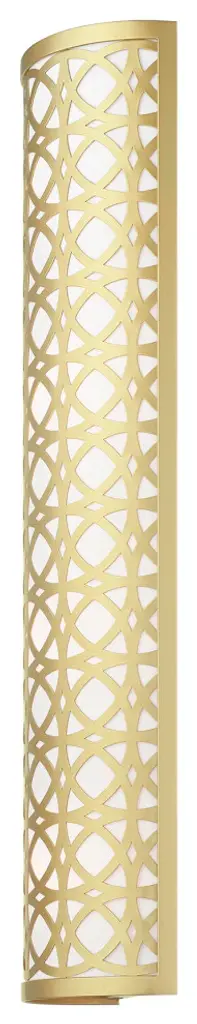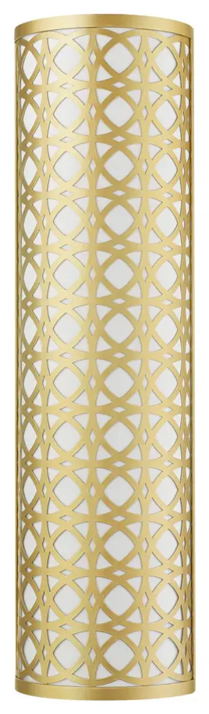 The transitional Calinda series adds refined style and a hint of mystery to your d�cor. The soft gold finish and an off-white handcrafted hardback shade create warm illumination, while soft light brings to life the intricate fretwork pattern. This large four-light sconce will add a sophisticated and glamorous look to almost any interior design style. It will work great horizontally or vertically and you can place it in the hallway, living room, bathroom or bedroom. Bulb Type: Candelabra BaseNumber of Bulbs: 4Bulbs Included?: NoUL Listed: ETLBulb Wattage: 40Hardwire or Plug: Hardwire