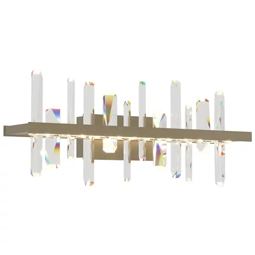 Angular crystal towers rise from an LED light guide and pierce through to emerge below, reflecting and refracting light in a vibrant sparkle.