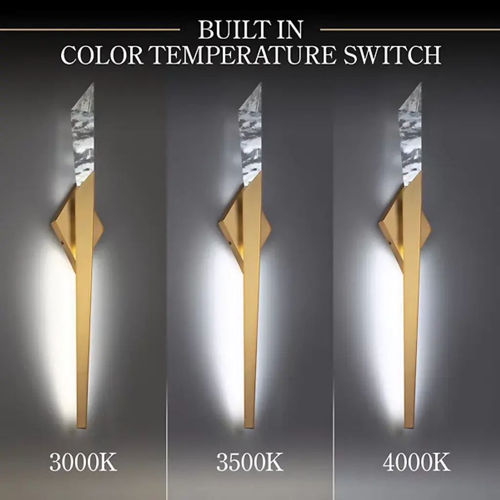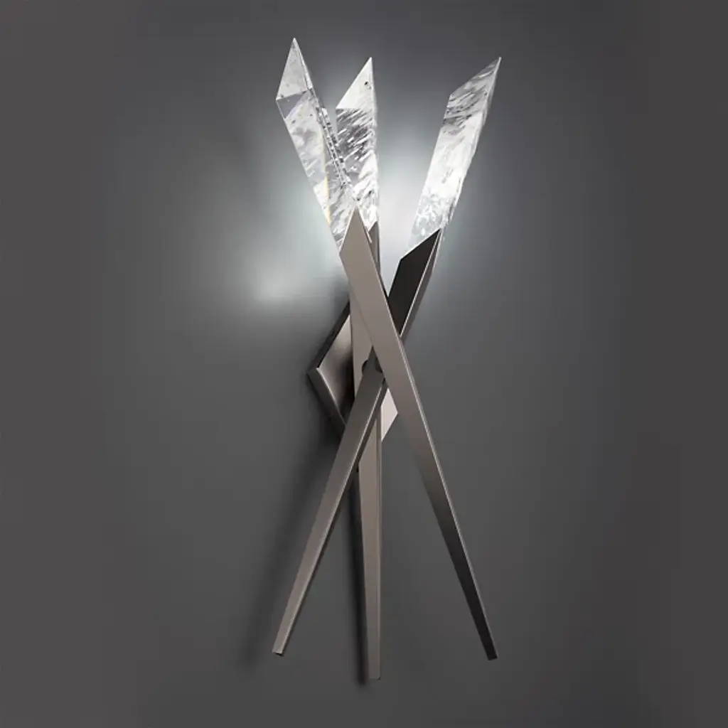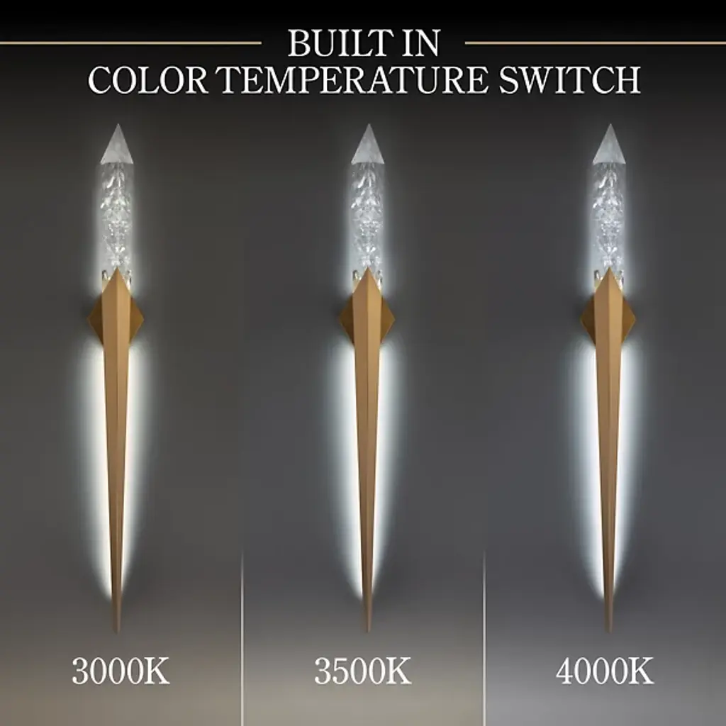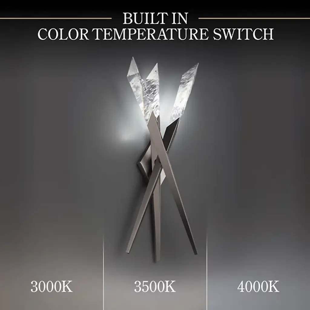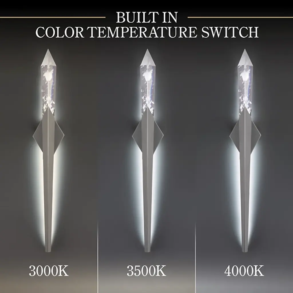 The Solitude LED Wall Sconce from Schonbek Beyond brings a contemporary aesthetic to your decorative spaces. This sconce is composed of fine aluminum, which forms a durable framework. This framework features cross sections that bolster panes of crystal that are triangularly cut, giving this fixture a sharp, pointed look. The crystal is enlivened by an integrated LED. Find your desired ambiance by dimming the light with an ELV dimmer. Change color temperatures quickly via a toggle switch.