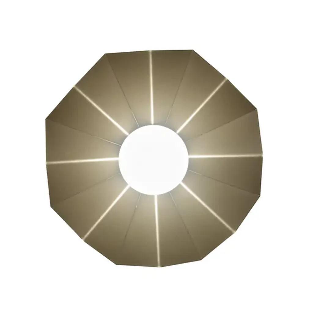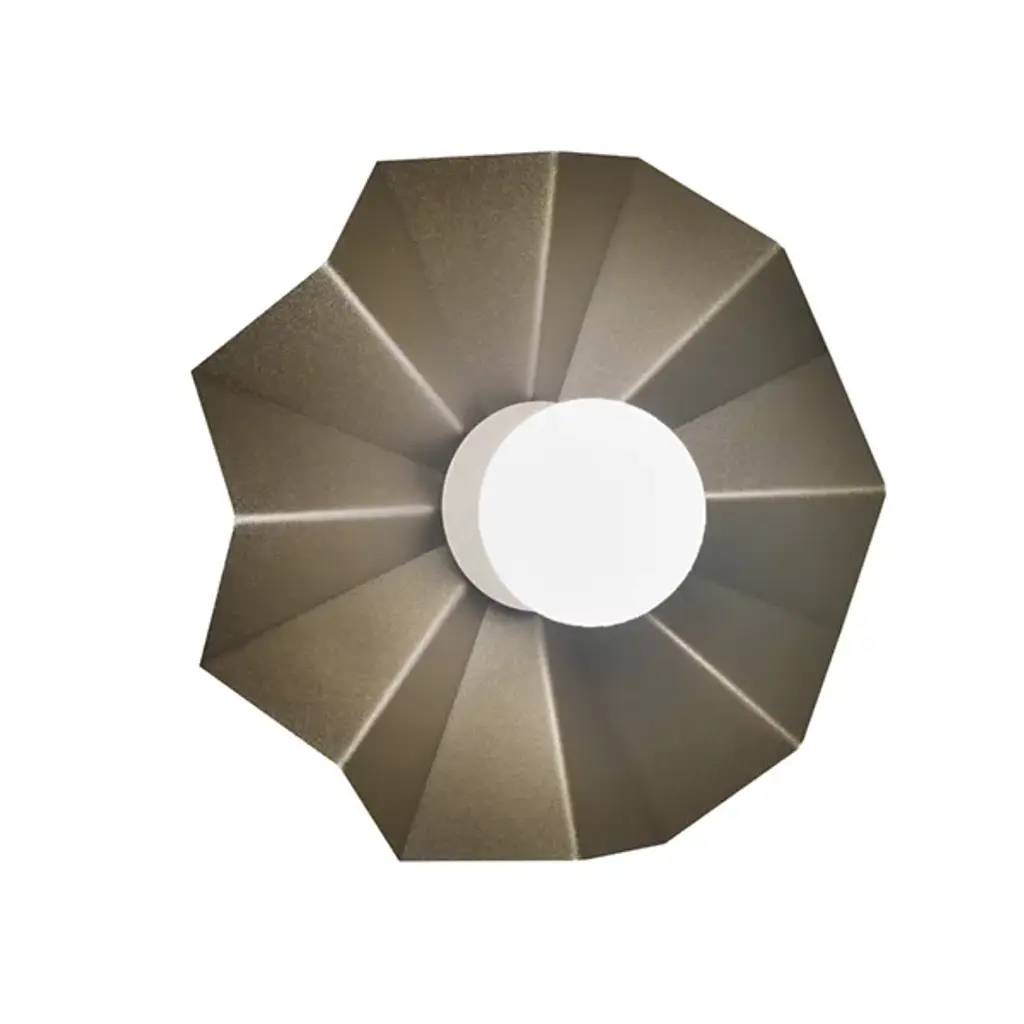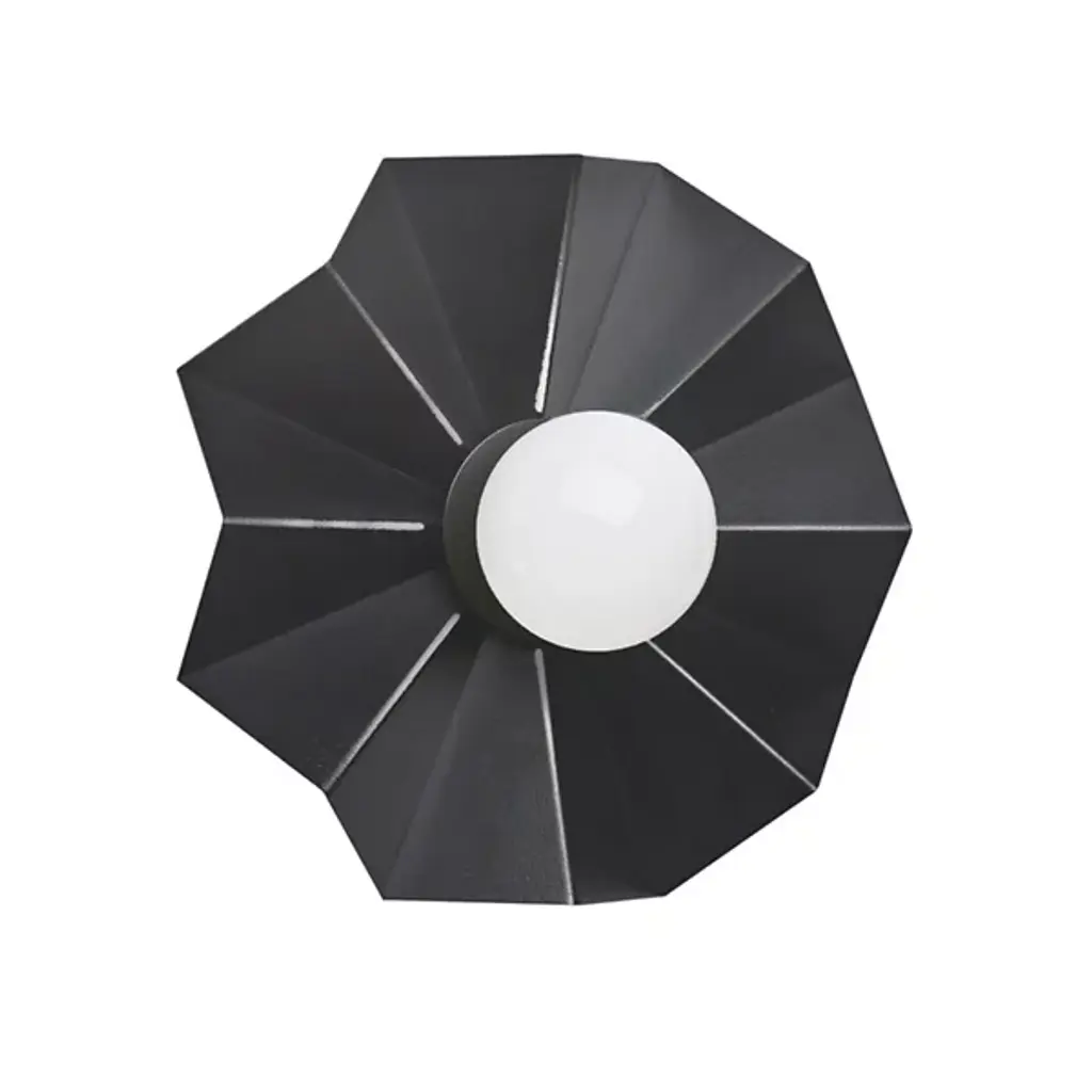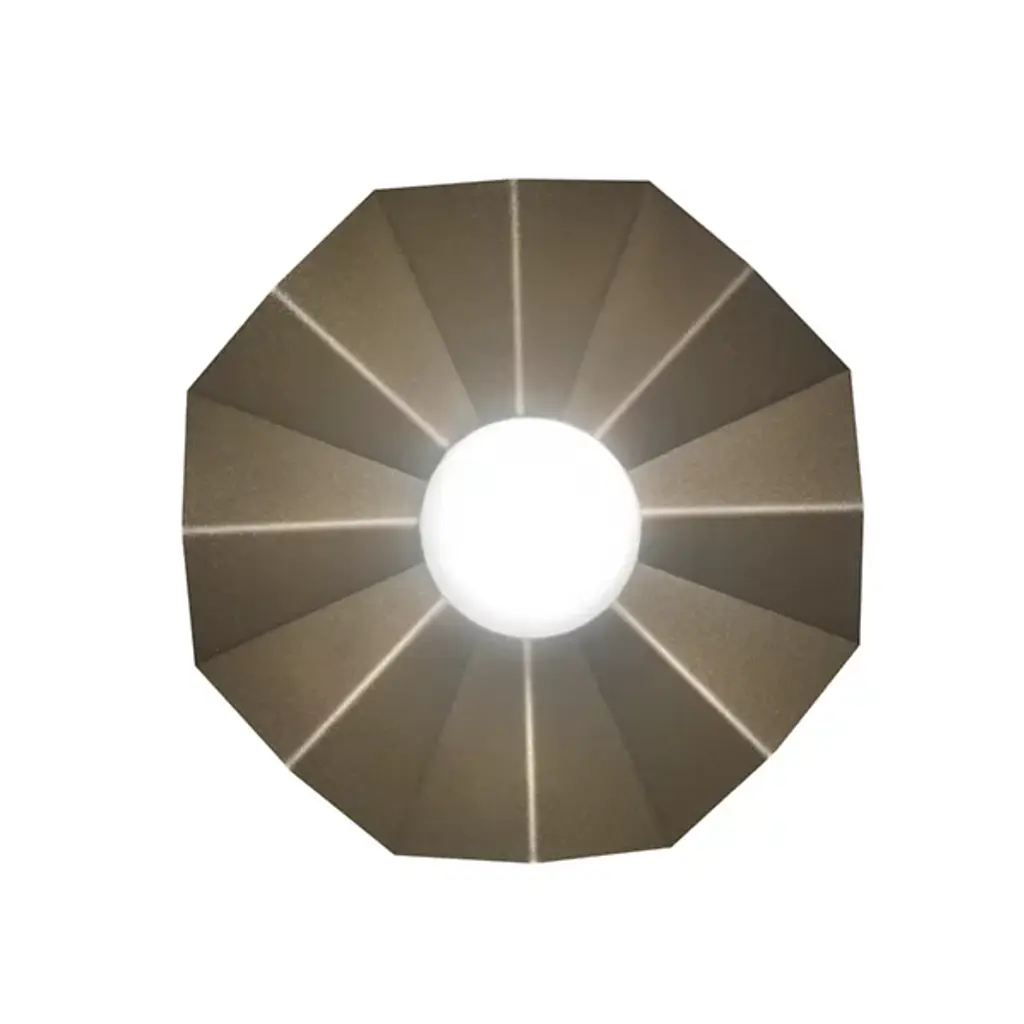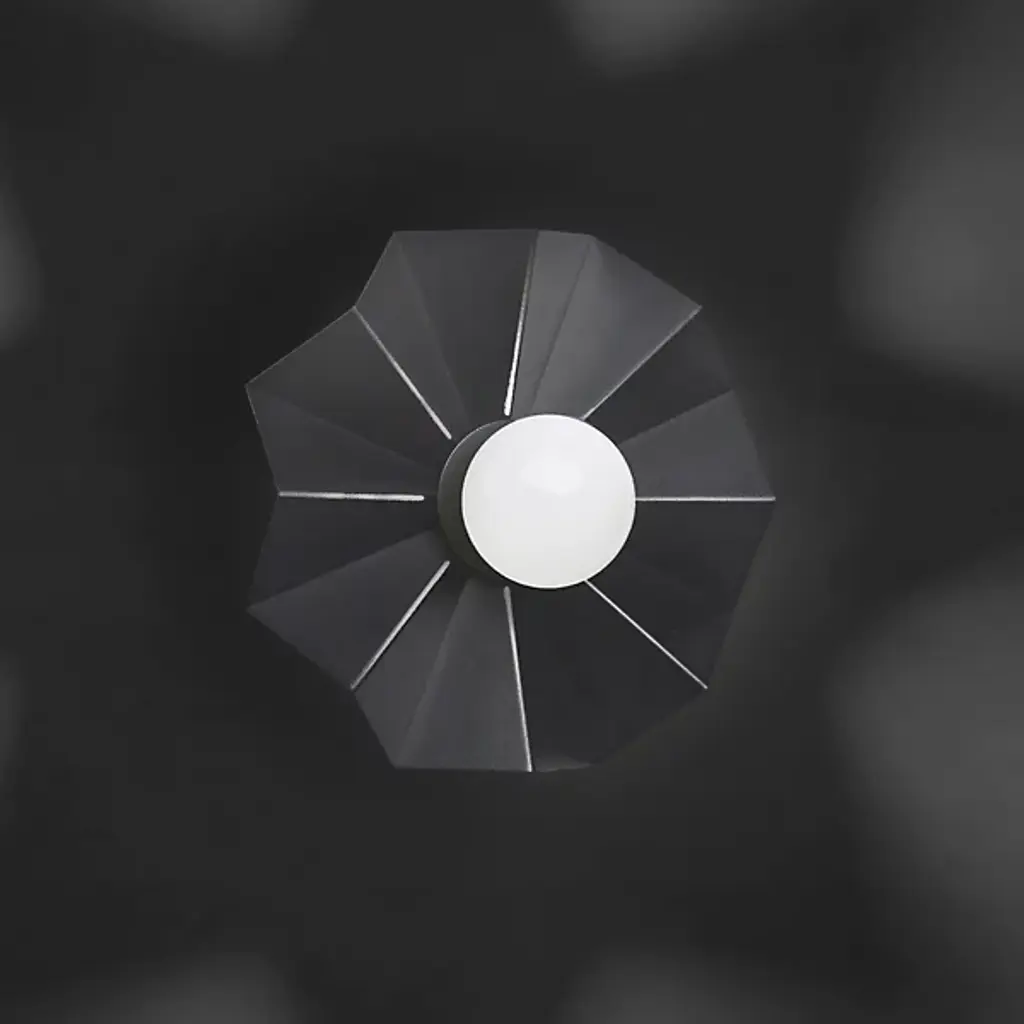 The Solo 23507 Wall Sconce from UltraLights brightens one’s spaces with dynamic lighting and a complex silhouette evocative of a kaleidoscope. This contemporary piece adds a punch of intrigue to open or compact spaces. It appears to float by concealing its mounting hardware. Shaped like an umbrella, the metal shade’s facets wow with a range of values. The lamp at the core glazes the shade with an ambient warmth that extends to nearby walls.