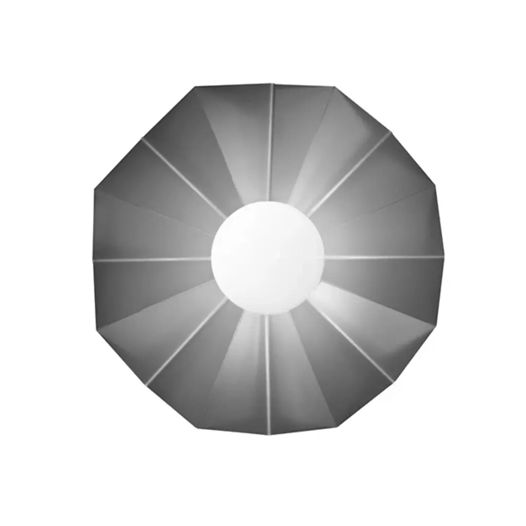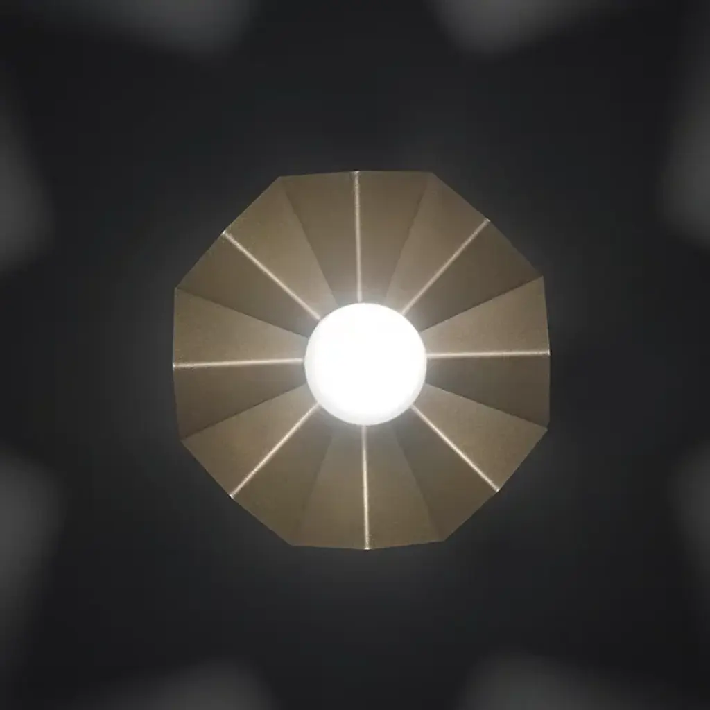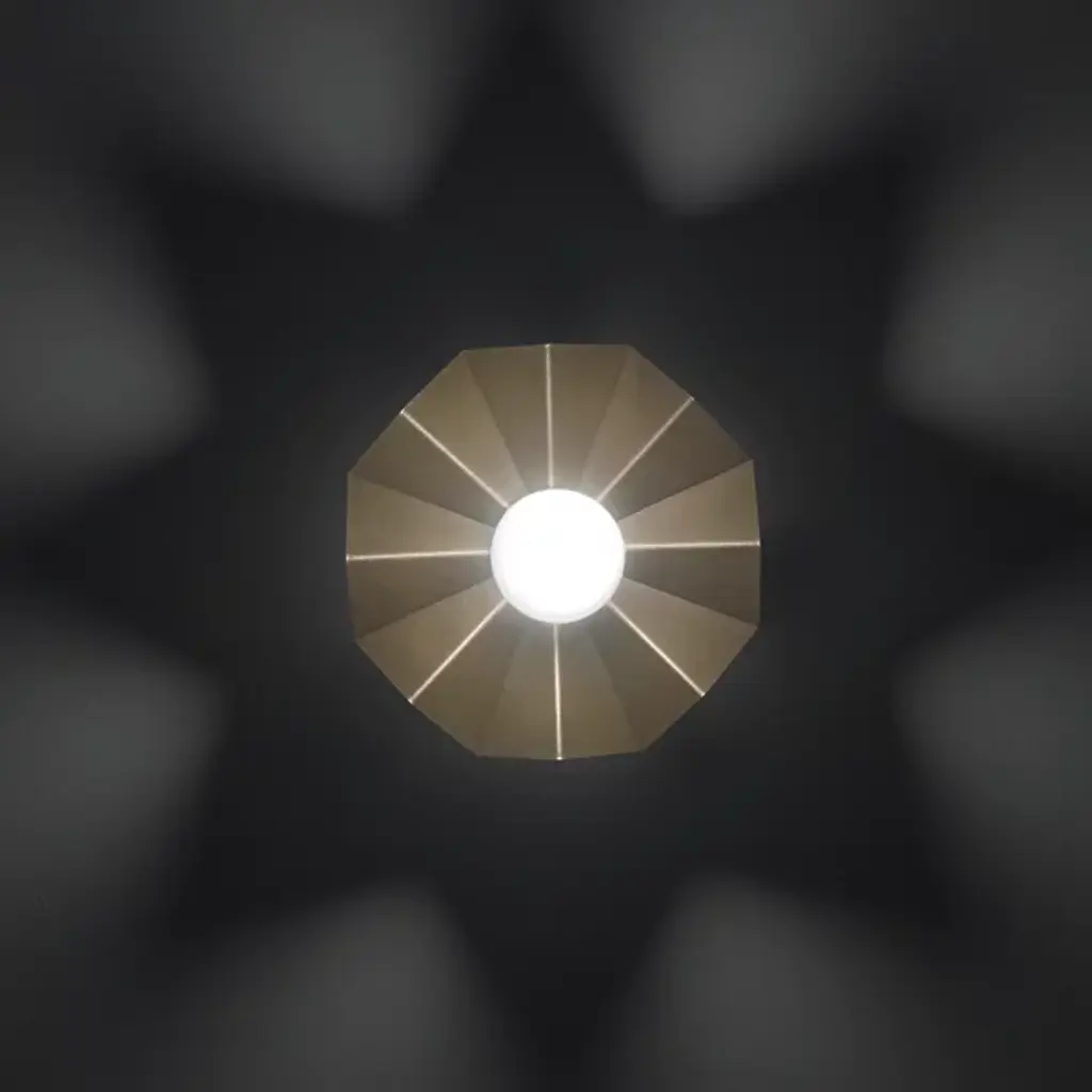 The Solo 23507 Wall Sconce from UltraLights brightens one’s spaces with dynamic lighting and a complex silhouette evocative of a kaleidoscope. This contemporary piece adds a punch of intrigue to open or compact spaces. It appears to float by concealing its mounting hardware. Shaped like an umbrella, the metal shade’s facets wow with a range of values. The lamp at the core glazes the shade with an ambient warmth that extends to nearby walls.