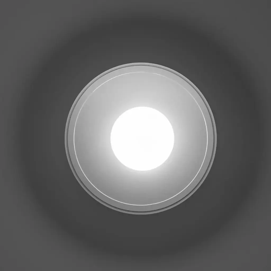 The Solo 23509 Wall Sconce from UltraLights presents its ambient light like a beautiful pulse wave with repeating round shapes and accents. The sconce’s geometry proves simple yet dramatic. Its dome-shaped metal backplate creates an elegant background for the pearl-like light source. This backplate sports a concentric circular accent that shines beautifully when lit. The globe light source at the center presents a radiant silhouette and a contained glow.