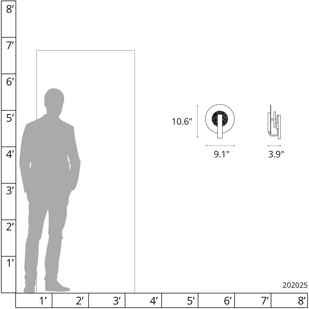 The beauty is in the details. The light is focused on a hand-poured, textured artisanal glass disc creating a unique glowing aura of light on its circular backplate.