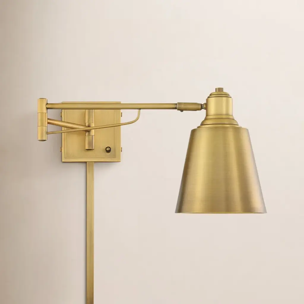 This 1-light, swing-arm wall sconce lights up your bedframe or hallway mirror with a sleek, modern feel. It's crafted from steel in a polished nickel hue with a simple rectangular backplate in a shiny finish. The arm reaches out in two parts, so its positioning is super customizable with a cylindrical holder. We love that the cone-shaped shade provides downlight. Rated safe to use in damp locations.