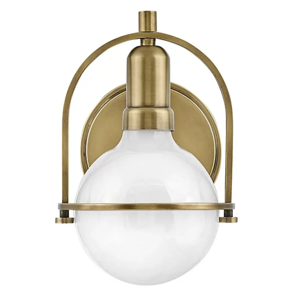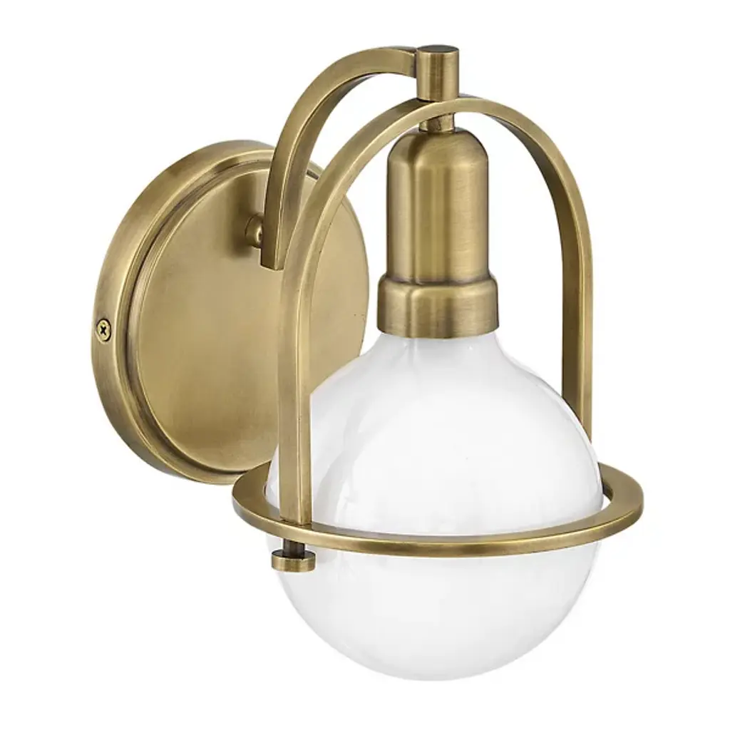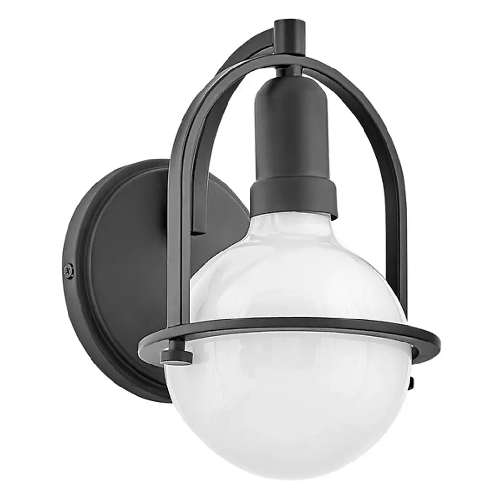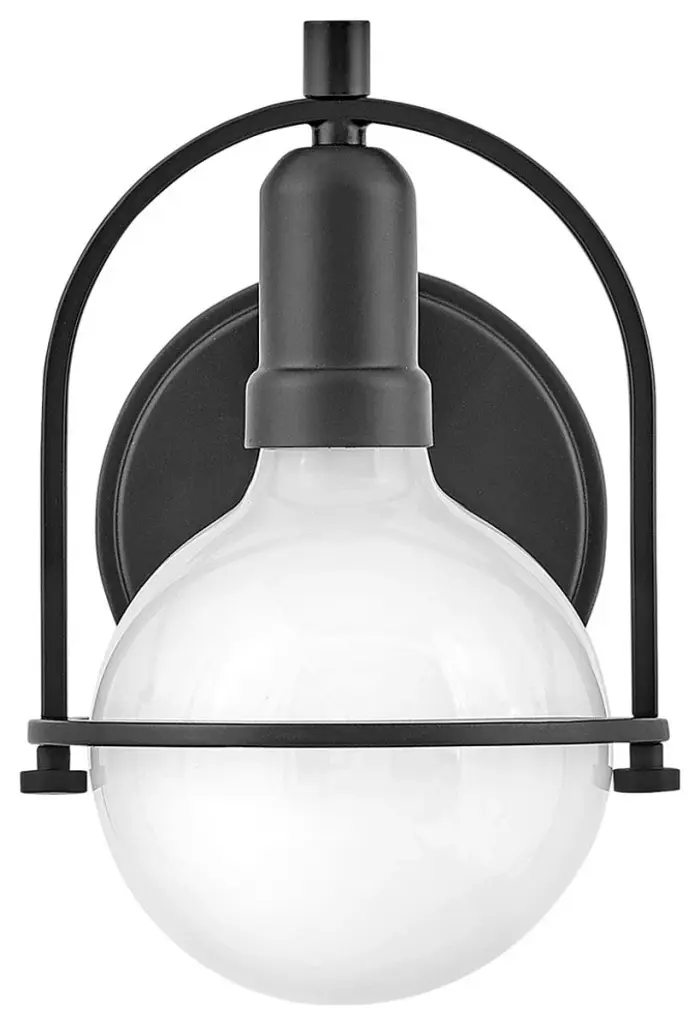 Clean, refined, chic. Elevate your bathrooms with the mid-century modern edge of the Somerset Bath Wall Sconce from Hinkley Lighting. It's a neat piece slotting in the tight nooks of your bathroom with a compact steel backplate. It brings you a simply sophisticated silhouette defined by clean shapes. The rounded metal frame protects the precious bulb while accentuating its soft curves. With a globe bulb fitted inside, the sconce serves as a source of warm ambient lighting.
