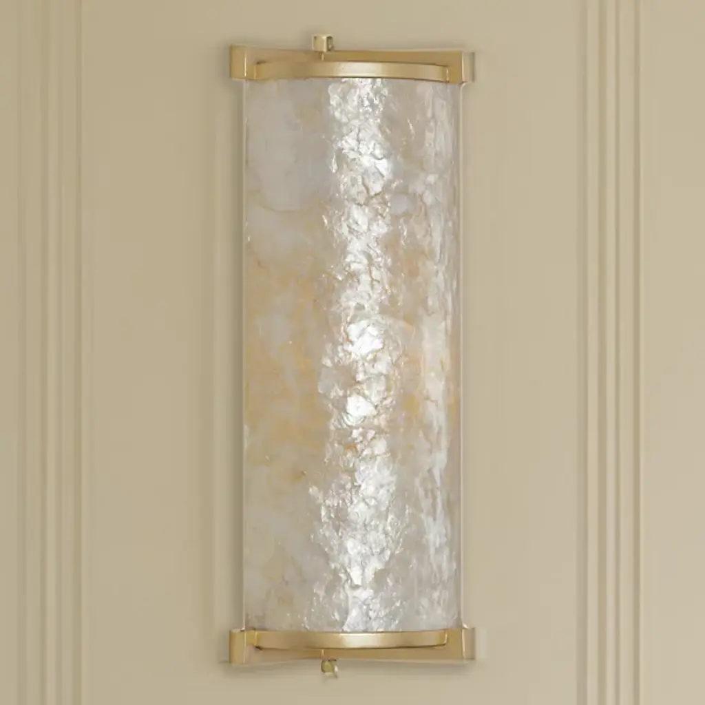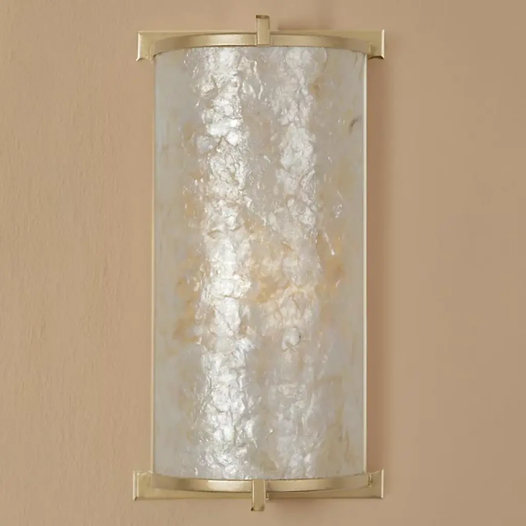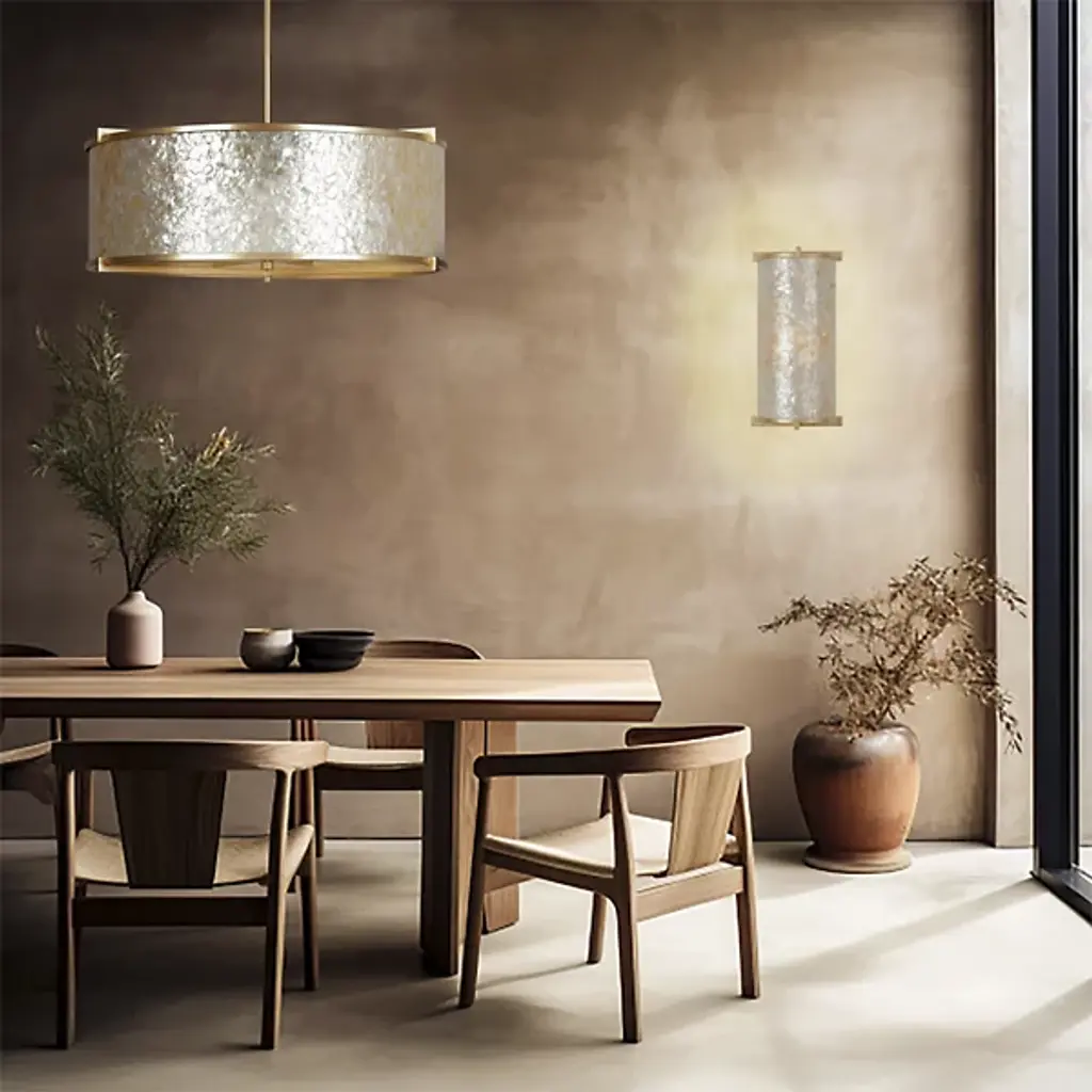 The Sommers Bend Wall Sconce from Metro Lighting pairs premium steel with handcrafted capiz shell inlays, creating a unique luminaire that embraces natural materials. The shell panels diffuse light through their organic patterns while maintaining structural integrity through the metal framework. The geometric metal brackets secure the cylindrical shade while adding architectural detail. This light fixture demonstrates how organic and engineered materials can work together to produce illumination that's both practical and aesthetically pleasing.