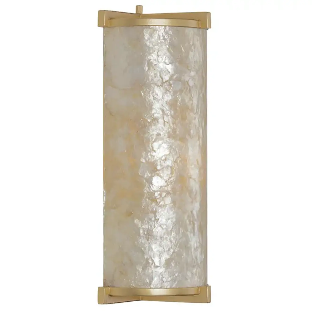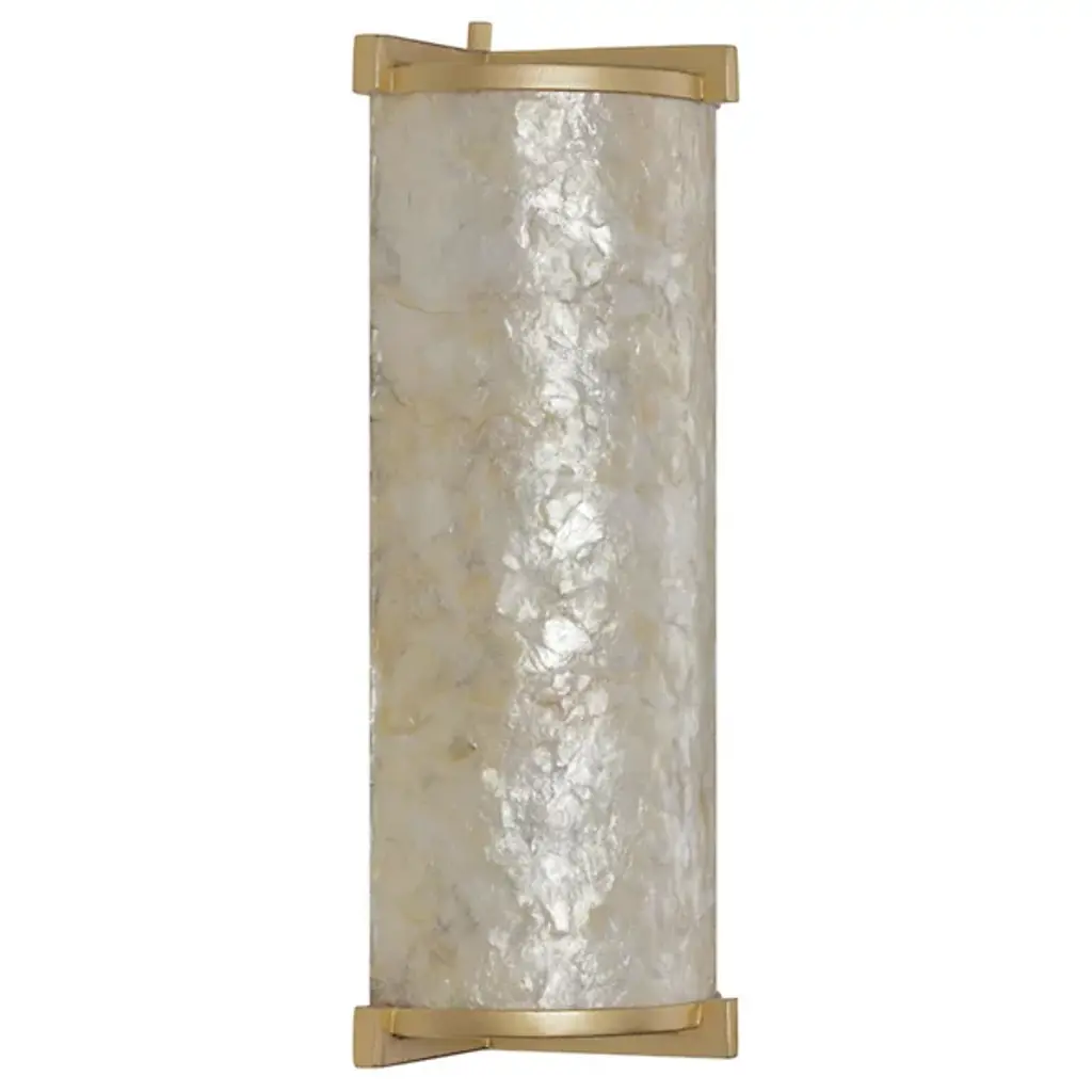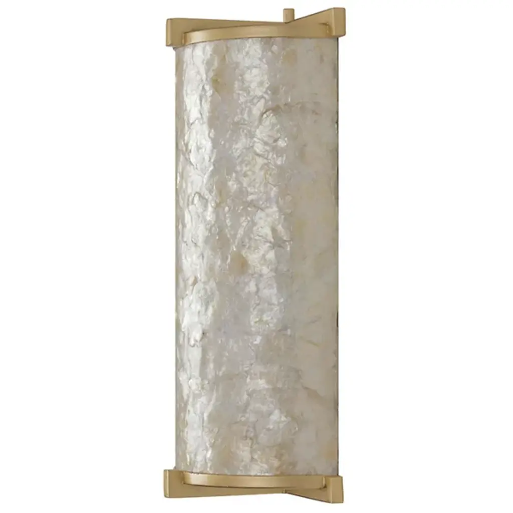 The Sommers Bend Wall Sconce from Metro Lighting pairs premium steel with handcrafted capiz shell inlays, creating a unique luminaire that embraces natural materials. The shell panels diffuse light through their organic patterns while maintaining structural integrity through the metal framework. The geometric metal brackets secure the cylindrical shade while adding architectural detail. This light fixture demonstrates how organic and engineered materials can work together to produce illumination that's both practical and aesthetically pleasing.
