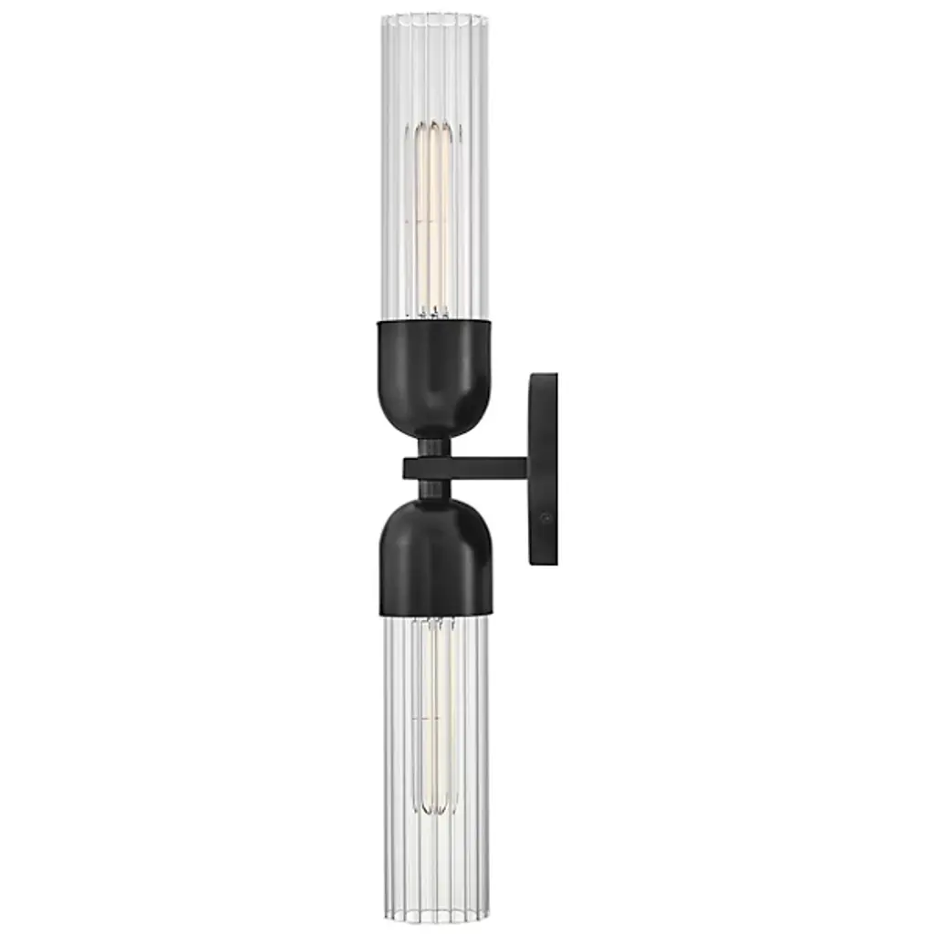 The Soren Bath Wall Sconce from Hinkley's design balances minimalism and drama, seamlessly merging classic and modern industrial elements with surprising details. Each lamp is enveloped in a clear fluted glass, creating mesmerizing refractions as gentle light fills the room. The versatile silhouette allows for multiple hanging configurations—up or down, vertically or horizontally—adapting to the unique character of your space. Elevate your environment with Soren, where unexpected design meets timeless sophistication for a truly distinctive lighting experience.