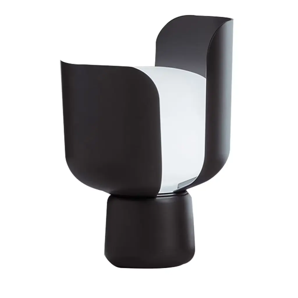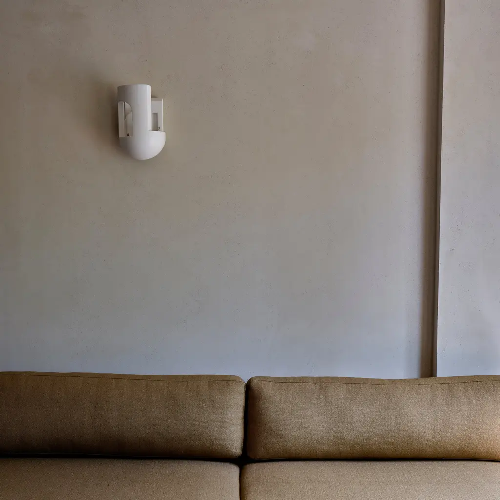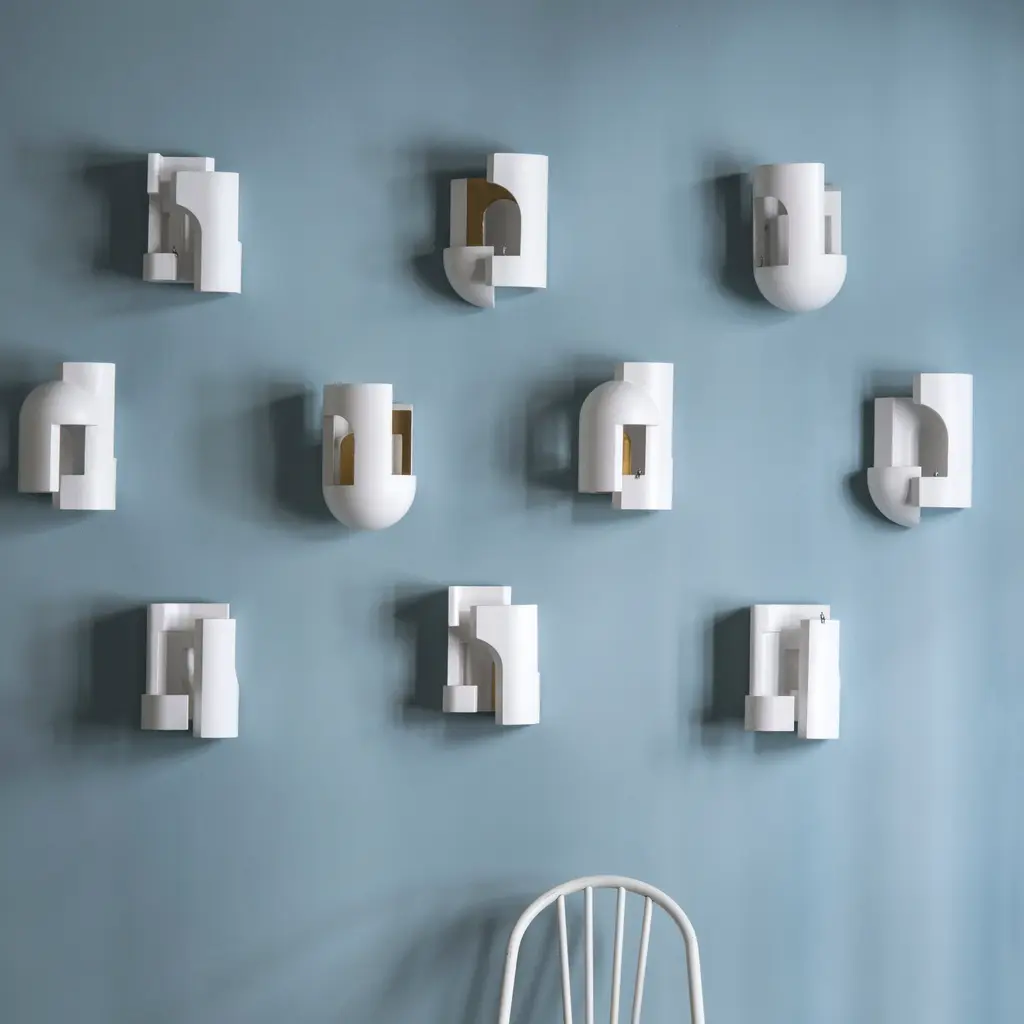 Soul Story 3, like its sister wall lights, was born of a chance meeting between French-Lebanese designer Charles Kalpakian and DCW Èditions’ Frédéric Winkler at a design fair. In white plaster, with or without gold leaf decoration, the designer plays on the image of a dusky night suddenly being pierced with a surreal ray of light in the varied constructions lit by an integrated LED. Kalpakian even includes a doppelgänger of himself in the small metal figure standing watch, inviting further contemplation of the configuration while also acting as a type of signature.