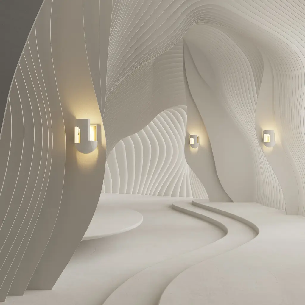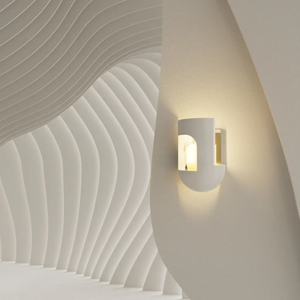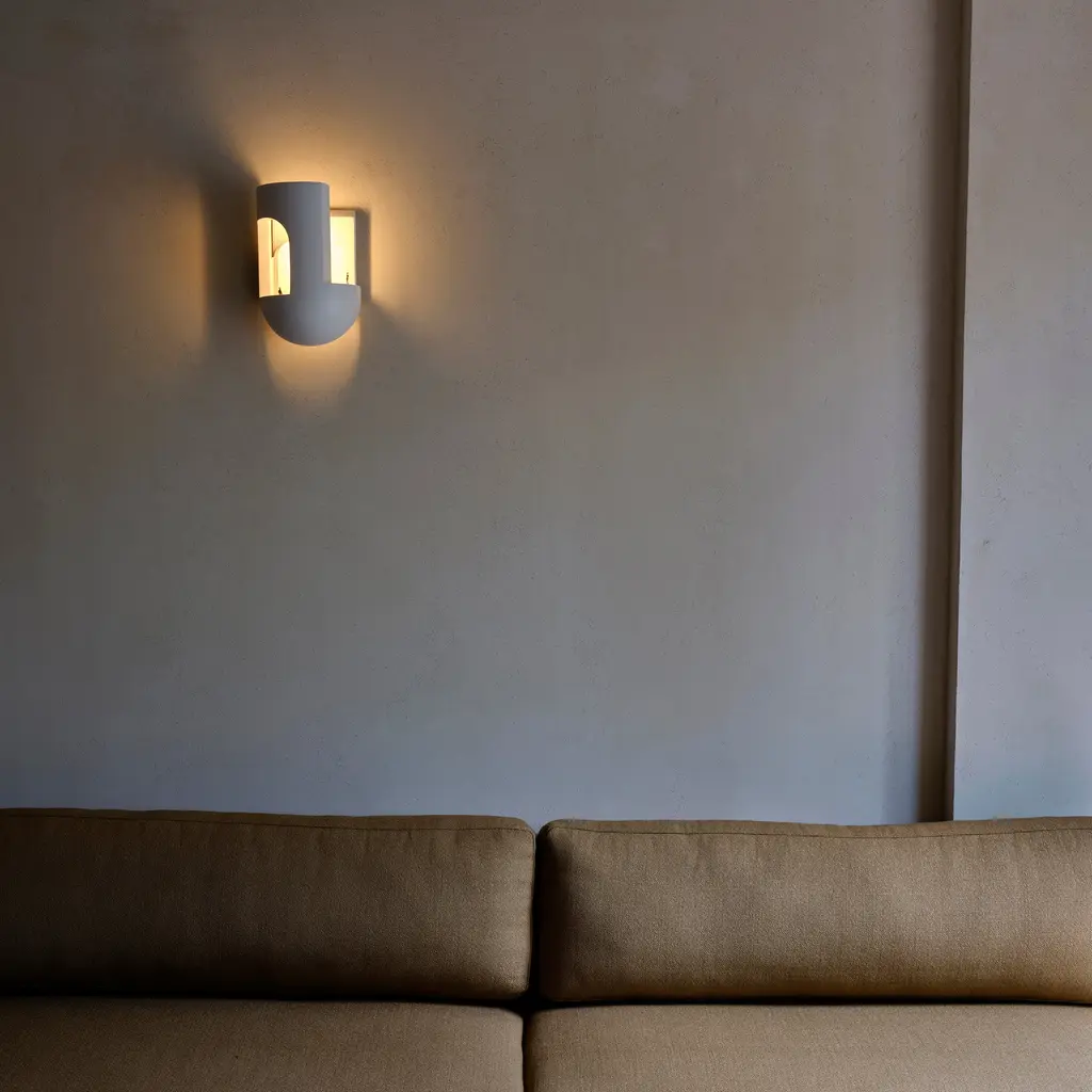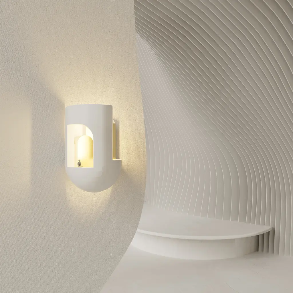 Soul Story 3, like its sister wall lights, was born of a chance meeting between French-Lebanese designer Charles Kalpakian and DCW Èditions’ Frédéric Winkler at a design fair. In white plaster, with or without gold leaf decoration, the designer plays on the image of a dusky night suddenly being pierced with a surreal ray of light in the varied constructions lit by an integrated LED. Kalpakian even includes a doppelgänger of himself in the small metal figure standing watch, inviting further contemplation of the configuration while also acting as a type of signature.