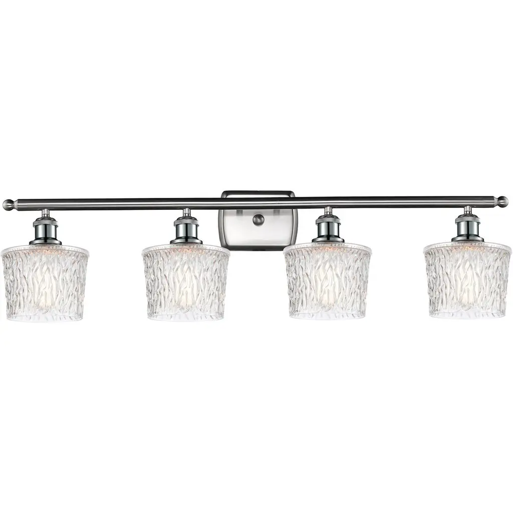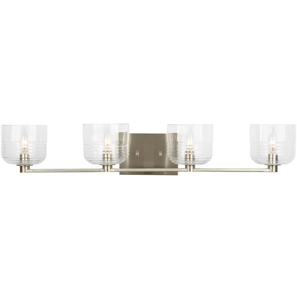 South Bay 4 Light Bath Style: Modern Rated: Dry Power: Hardwire Lamping: 4 light(s). 3W LEDBulb(s) included. Finish: Chrome Oval Handblown Venetian Style Sun Glass is cradled on a simple yet nicely detailed frame. Available in Polished Chrome of Satin Nickel finish.