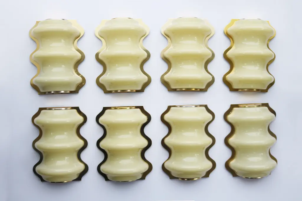 Doria Space Age wall light Waveform / Wave OpArt Design Height 24cm Width 18cm Depth 9cm 1 x E14 socket / excl. Light bulbs An absolutely exceptional and very rare Doria lamp Overall good condition with only slight signs of wear and patina Up to 8 lights are available They were installed in a very long hallway in a 70s bungalow This piece has an attribution mark, I am sure that it is completely authentic and take full responsibility for any authenticity issues arising from misattribution, Up to 250V (Europe/UK Standard).The wiring of this item may be original and might need replacement, if not specified otherwise.