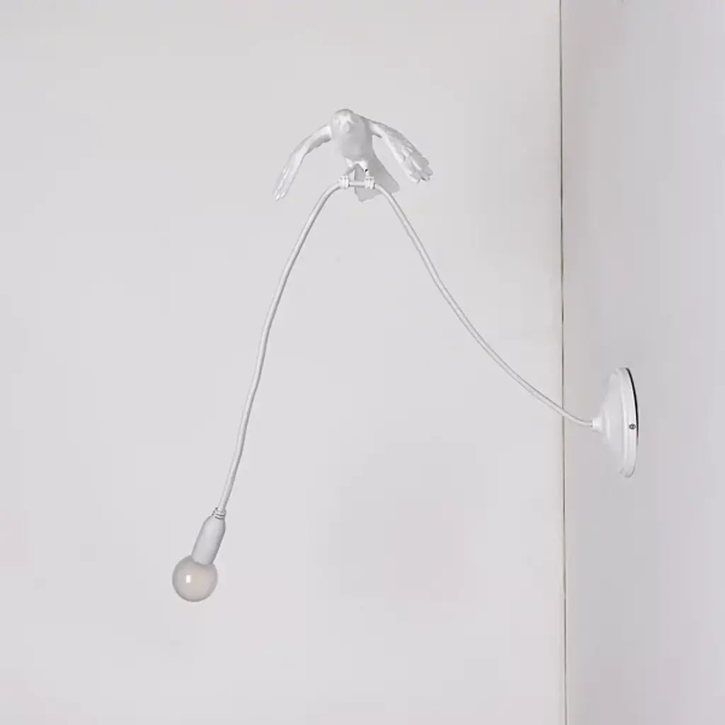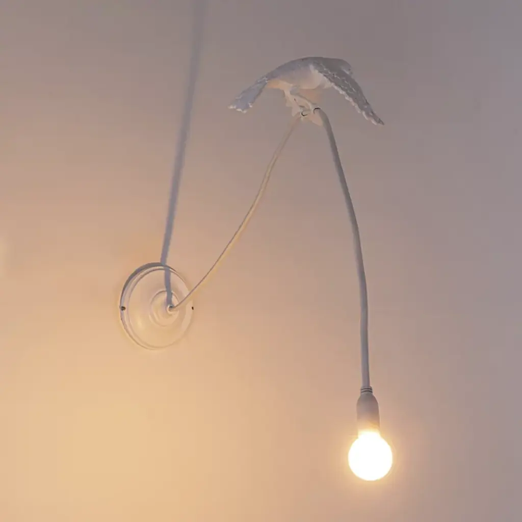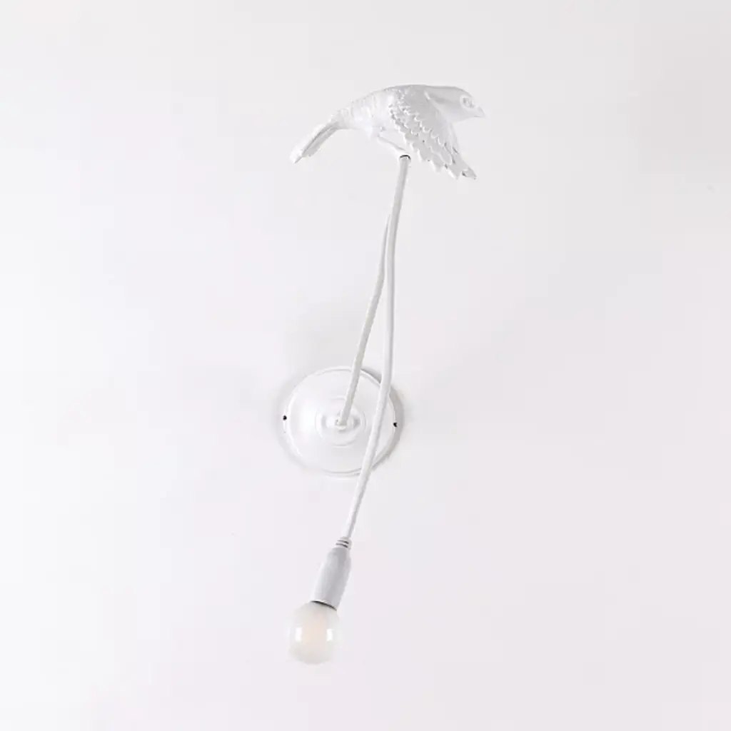 Add a vintage touch to your interior decor with the charming Sparrow Taking Off Wall Sconce from Seletti. Designed by Marcantonio, this whimsical fixture takes inspiration from the graceful movements of birds. Crafted from resilient resin and steel, it features a disc wall plate with an extending cord playfully grasped by the legs of a sculpted sparrow. The design showcases the graceful ascent of a bird taking flight, its soaring aesthetic enhancing its surroundings with an imaginative design and captivating appeal, adding a delightful ambiance to its surroundings.