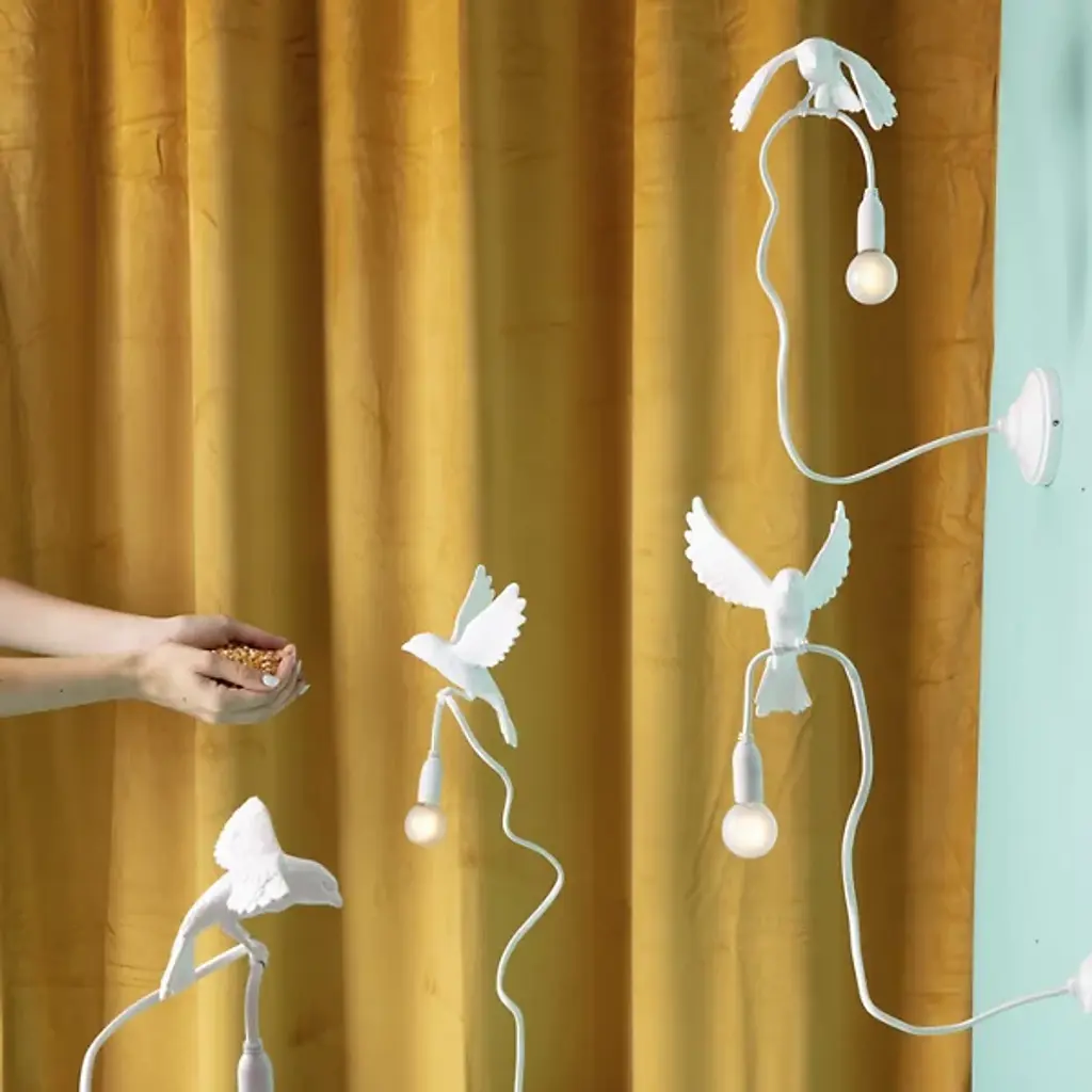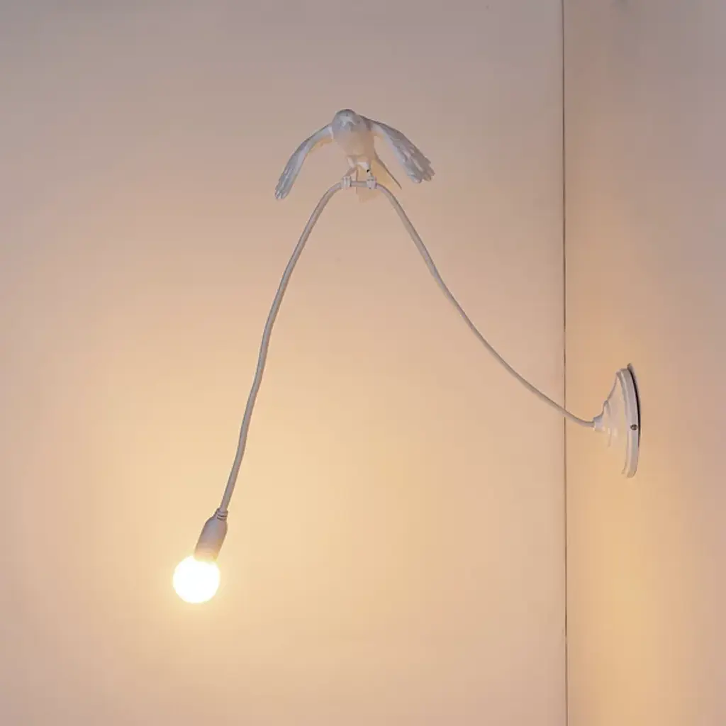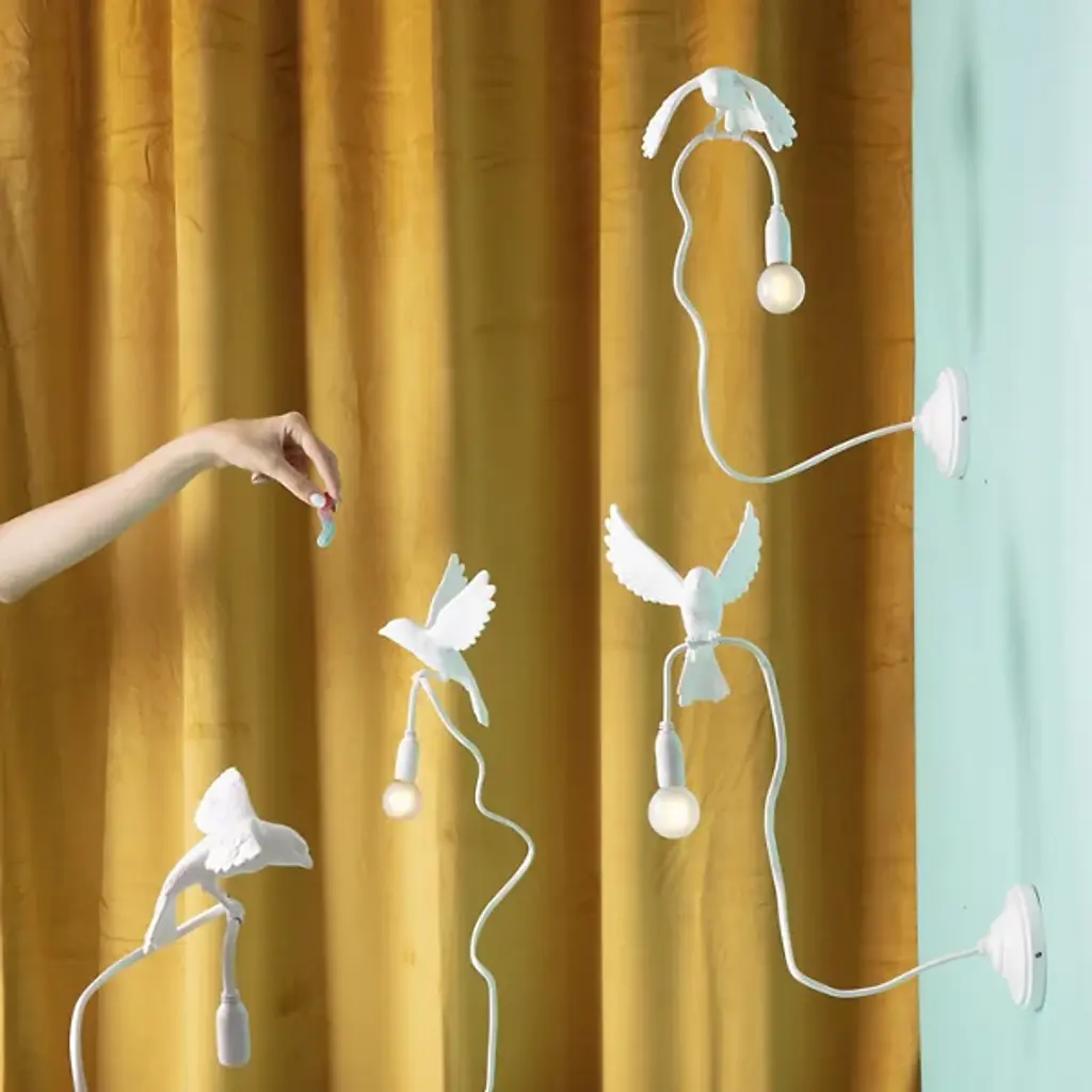 Add a vintage touch to your interior decor with the charming Sparrow Taking Off Wall Sconce from Seletti. Designed by Marcantonio, this whimsical fixture takes inspiration from the graceful movements of birds. Crafted from resilient resin and steel, it features a disc wall plate with an extending cord playfully grasped by the legs of a sculpted sparrow. The design showcases the graceful ascent of a bird taking flight, its soaring aesthetic enhancing its surroundings with an imaginative design and captivating appeal, adding a delightful ambiance to its surroundings.
