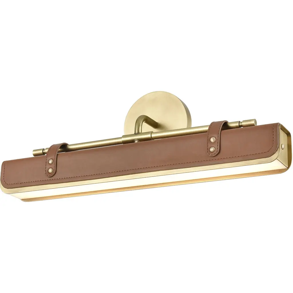 Refresh the feel of any room in your home with the Spero Wall Sconce by Cerno. Handmade in the USA, this luxurious wall sconce is built from strong aluminum and features metal accents that fasten the leather strap shade to the fixture body, allowing for a balance of contrasts. This eco-friendly, wall-mounted light releases crisp downlight that accentuates the best parts of your space. This minimalist light fixture is perfect for use in any hallway, living room or bedroom setting.