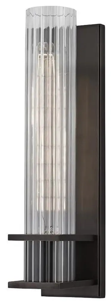 Evocative of Manhattan''s endless cool, the Sperry sconce is minimalism at its finest. Up-thrust against a rectangular backplate, a long tungsten-filament Bulbs (Not Included) is enveloped by ribbed glass. Aesthetic tension springs from the proximity of the design''s lines and the superior engineering of its elements.Shade Finish: ClearLighting Info.: 1 x 75W E26 Medium Incandescent Bulbs (Not Included)UL ListedLighting fixture is rated for Damp Location