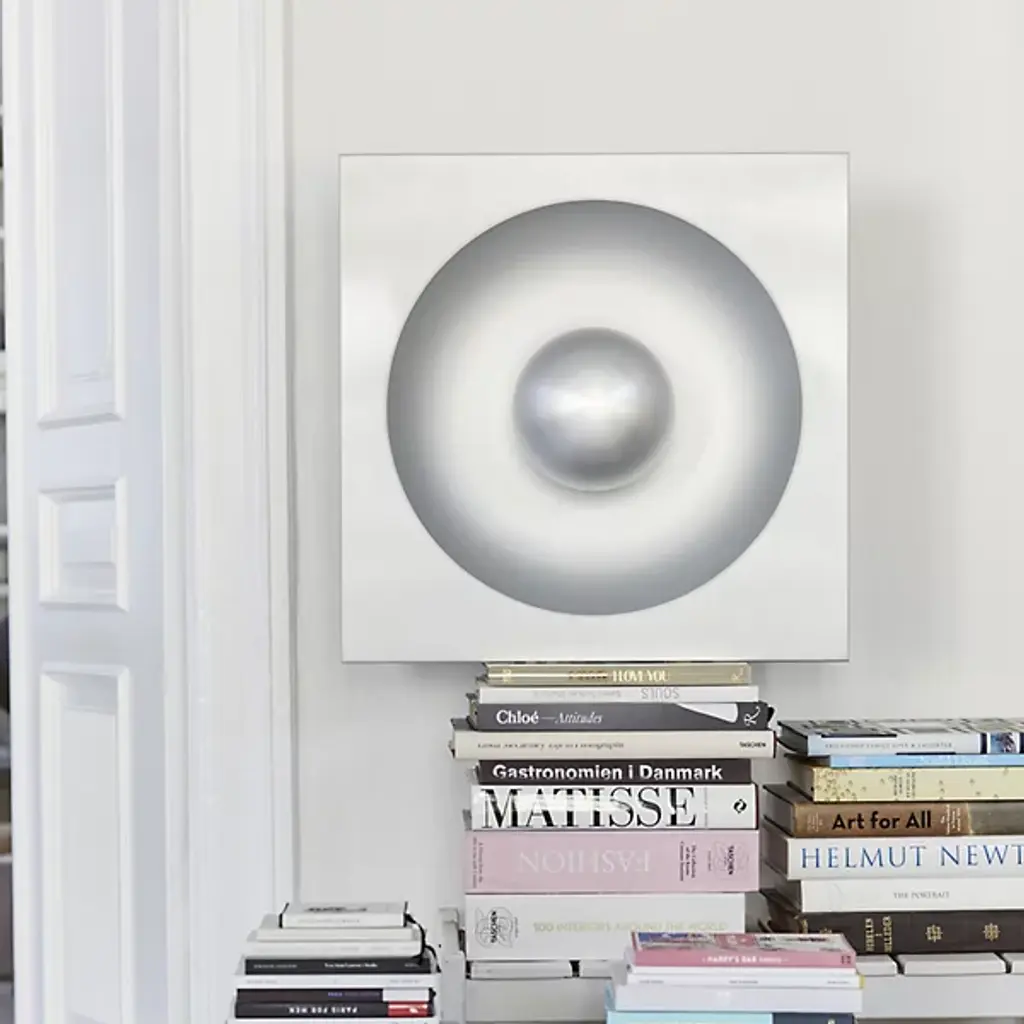The Spiegel Wall Sconce from Verpan is designed by Verner Panton. This art piece is famous for its inclusion in Der Spiegel Publishing House in Hamburg, 1969. It is defined by its hemispheric look and avant-garde aesthetic. Composed of aluminum, it features a glass shade that emanates LED light. Spiegel comes with an on/off cord switch for easy control. It exudes architectural lair and is dimmable using a separately sold ELV dimmer.