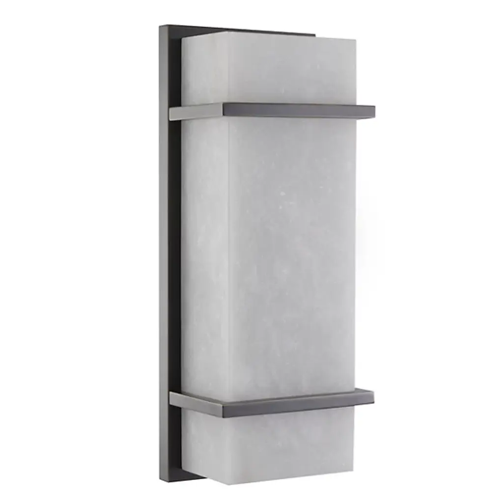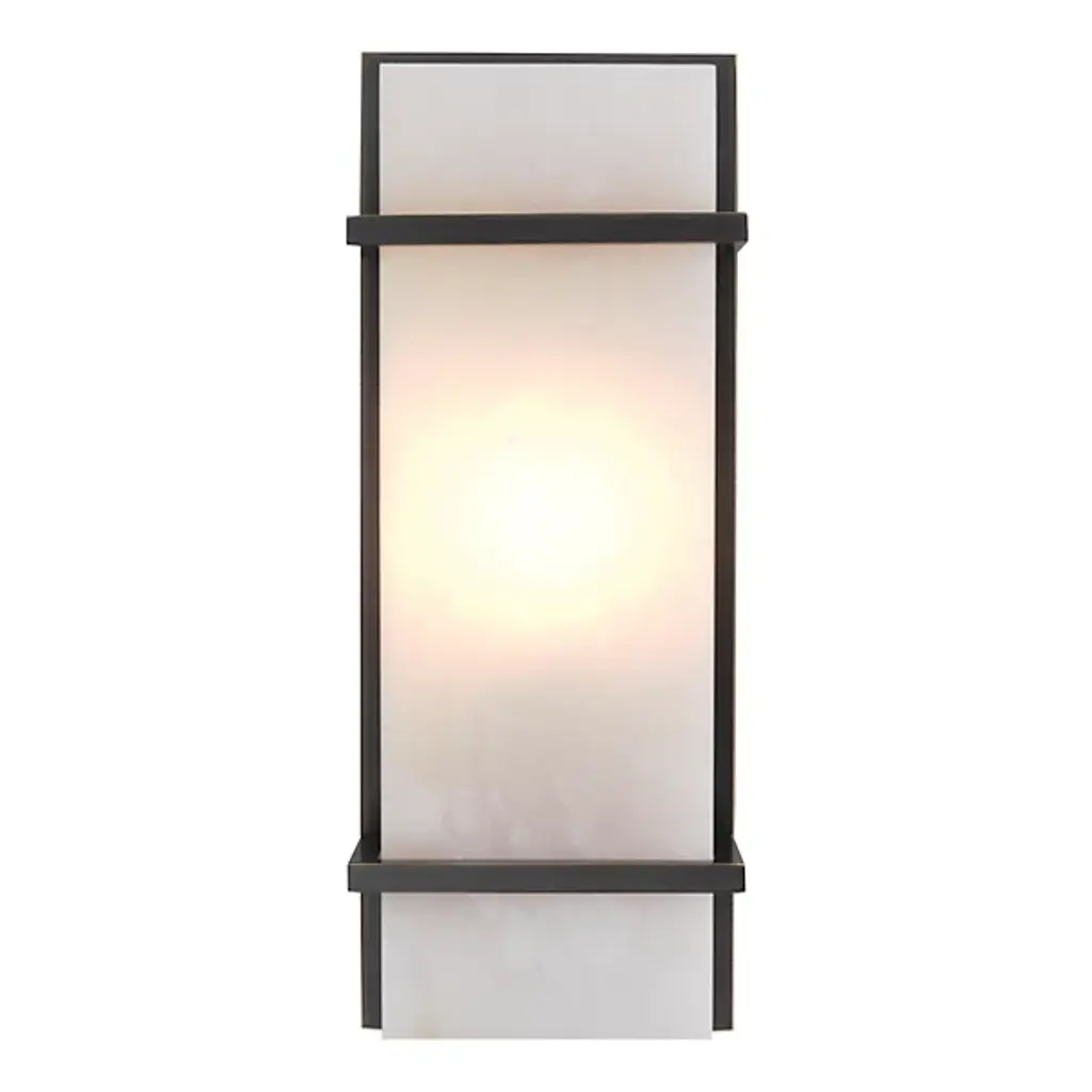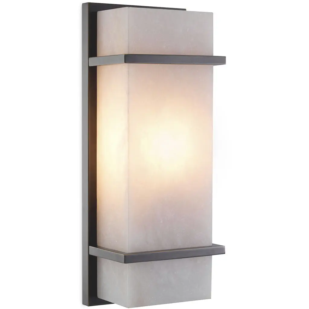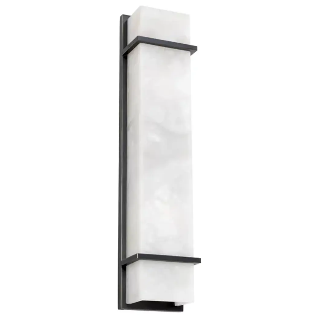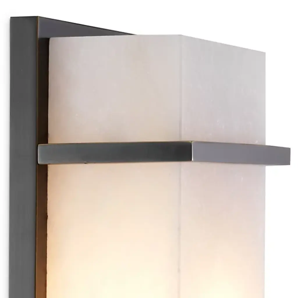 Graphic Bauhaus-inspired shapes serve as a beautiful frame for the soothing alabaster display of the Spike Wall Sconce from Eichholtz. This sconce’s long geometric design is a neat architectural fit alongside an entryway or framed picture. It makes efficient use of space with a low-profile backplate. This backplate acts as the graphic background for the diffuser, with bracketing elements in front serving as accents. The alabaster shade seduces with a painterly texture made up of rich milky tones. Warm light eases through the beautiful alabaster, leaving a cast glow on the back wall.