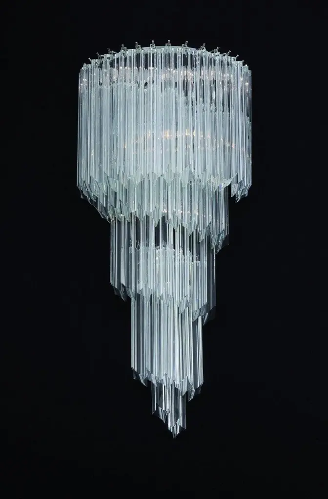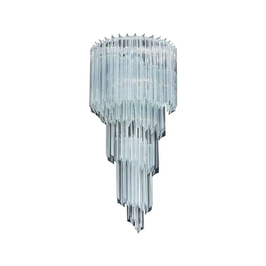 Italian wall light with clear Murano glass hand blown into four points using Quadriedri technique, mounted on chrome metal finish / Designed by Fabio Bergomi, inspired by Venini / Made in Italy4 lights / E12 or E14 type / max 40W each Measures: Height 27.5 inches / diameter 15.75 inches Order Only / This item ships from ItalyPlease inquire for custom options / pricing / current lead timesOrder Reference: FABIOLTD W215