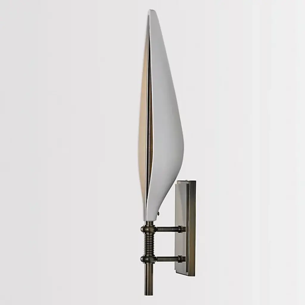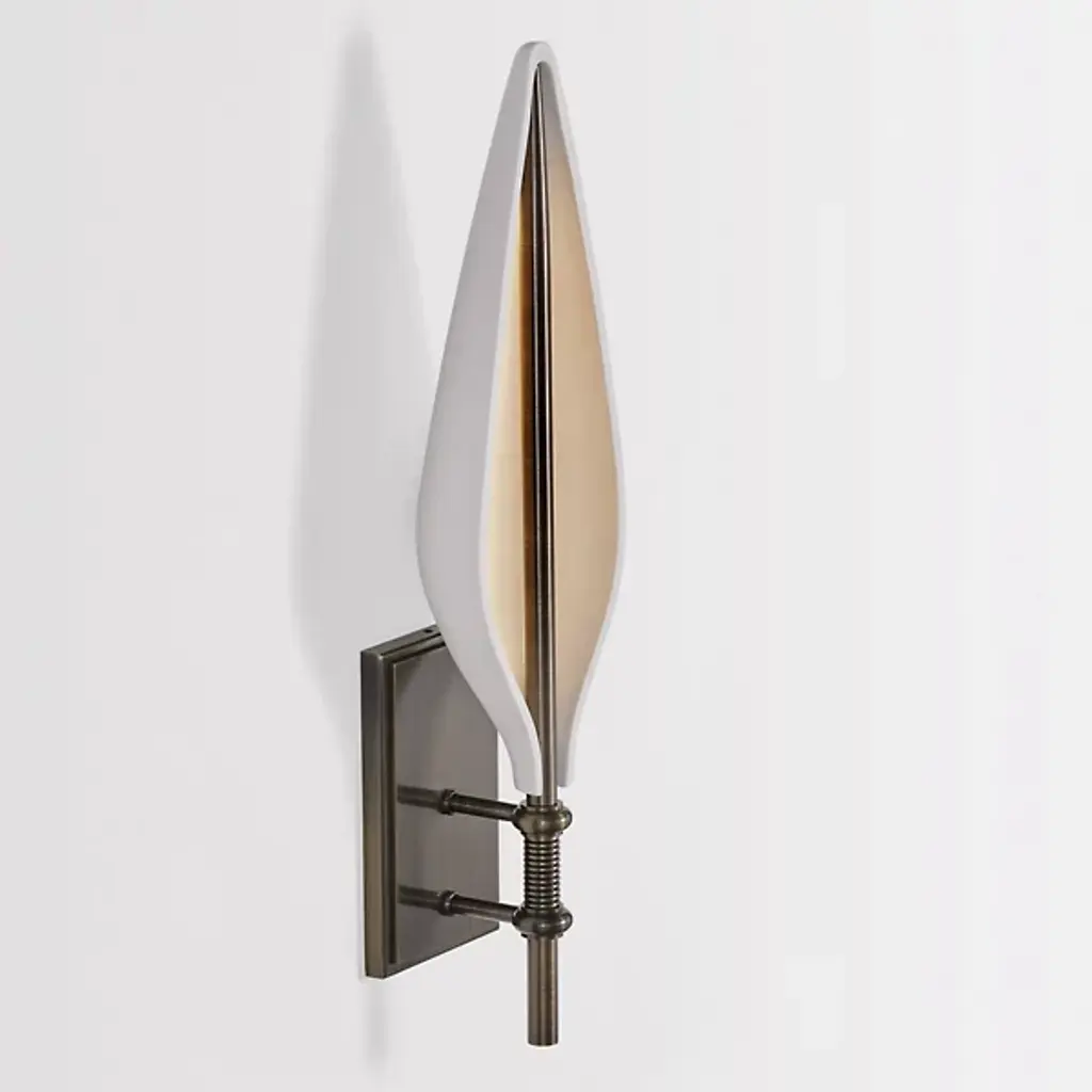 The Spire LED Wall Sconce from Boyd Lighting is an artful beauty, making a connection between a church’s epic spire and a leave’s pointy shape. The sconce surprises as it feels familiar yet sets itself apart as a functional piece of art. It reveals its transitional personality with a classically styled brass backplate. Turned brass rods move your eyes from the bottom up in one quick motion. The rod evokes the central, connecting line running across a leaf. Surrounding it, a gorgeous porcelain shade presents a delicate, pointy silhouette. LED light points at the interior of the porcelain and fills it up with a warm ambient glow.