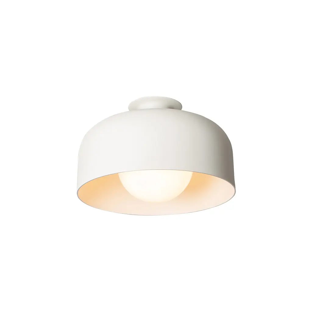 Gorgeously crafted in spun aluminum, each of the 5 shade styles in A-N-D's Spotlight Volumes series also makes for a singular ceiling fixture. Finished in a textured matte powder-coat with a buttery yellow interior that warmly reflects the illumination, designer Lukas Peet's dimmable light reads as both contemporary and timeless, suiting a variety of interiors.