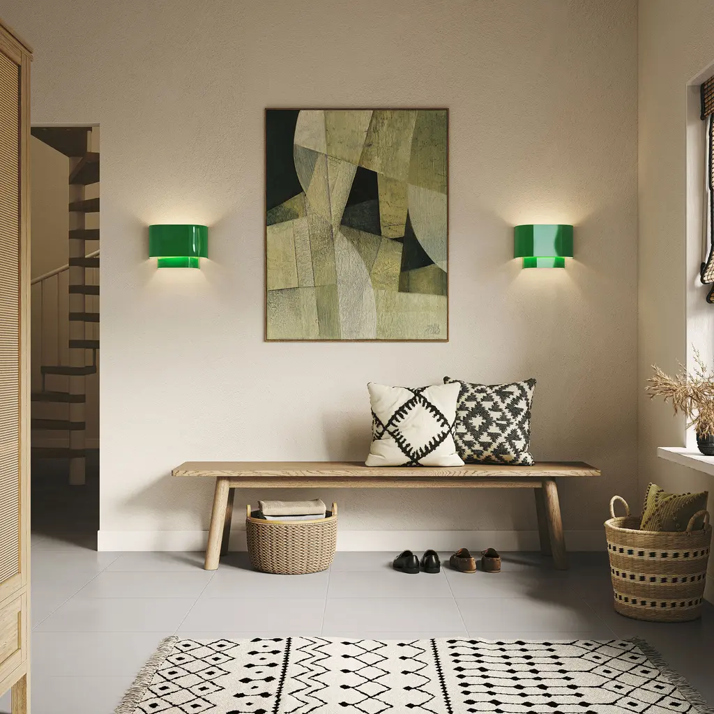 The sleek style and simple design of the Springview ADA wall sconce makes it easy to use in any space. The colorful double steel shade makes a bold statement and gives it a clean, modern look.