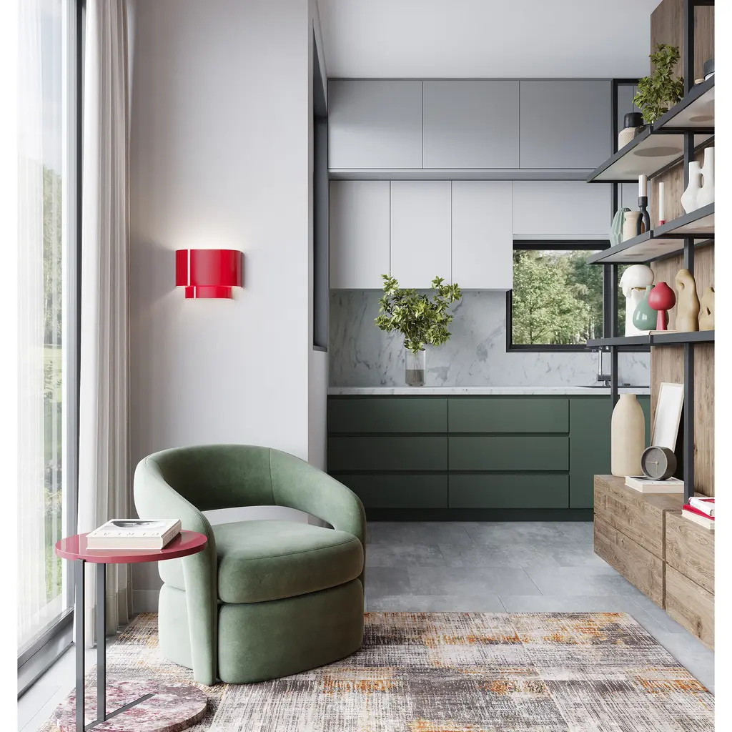 The sleek style and simple design of the Springview ADA wall sconce makes it easy to use in any space. The colorful double steel shade makes a bold statement and gives it a clean, modern look.