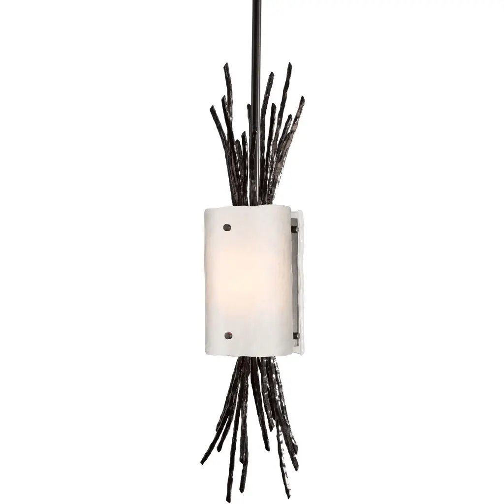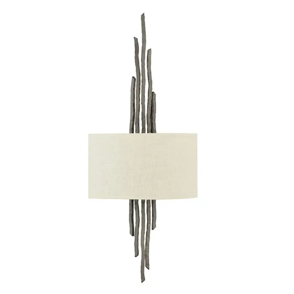 Organic and pointing towards the sky like a beautiful spire tree. The Spyre Wall Sconce from Fredrick Ramond gives the home a distinct personality with an elegant silhouette that reflects the hand of the artisan. This sculptural take on lighting plays well with the contemporary aesthetic. It serves as an eye-catching decoration while the lights are off by laying handcrafted steel rods across the wall. These rods vary slightly in size and texture, making this piece a true one-of-one. A clean linen shade wraps over the center of the steel rods to accentuate their detail work and to reduce the lamping’s glare.