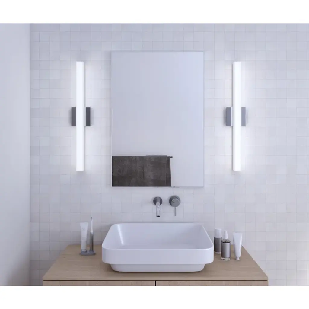 Bathroom remodels come in many forms, but across all of them, one thing remains the same: Lighting matters. Layers of lighting turn tiny washrooms into statement-makers and large-scale bathrooms into spa sanctuaries. Take this bath bar for example: Crafted from plastic, it showcases a neutral white color on its rectangular shade for a look that won’t clash with your current color palette. Inside, it accommodates one 21 W LE lightbulb (included).