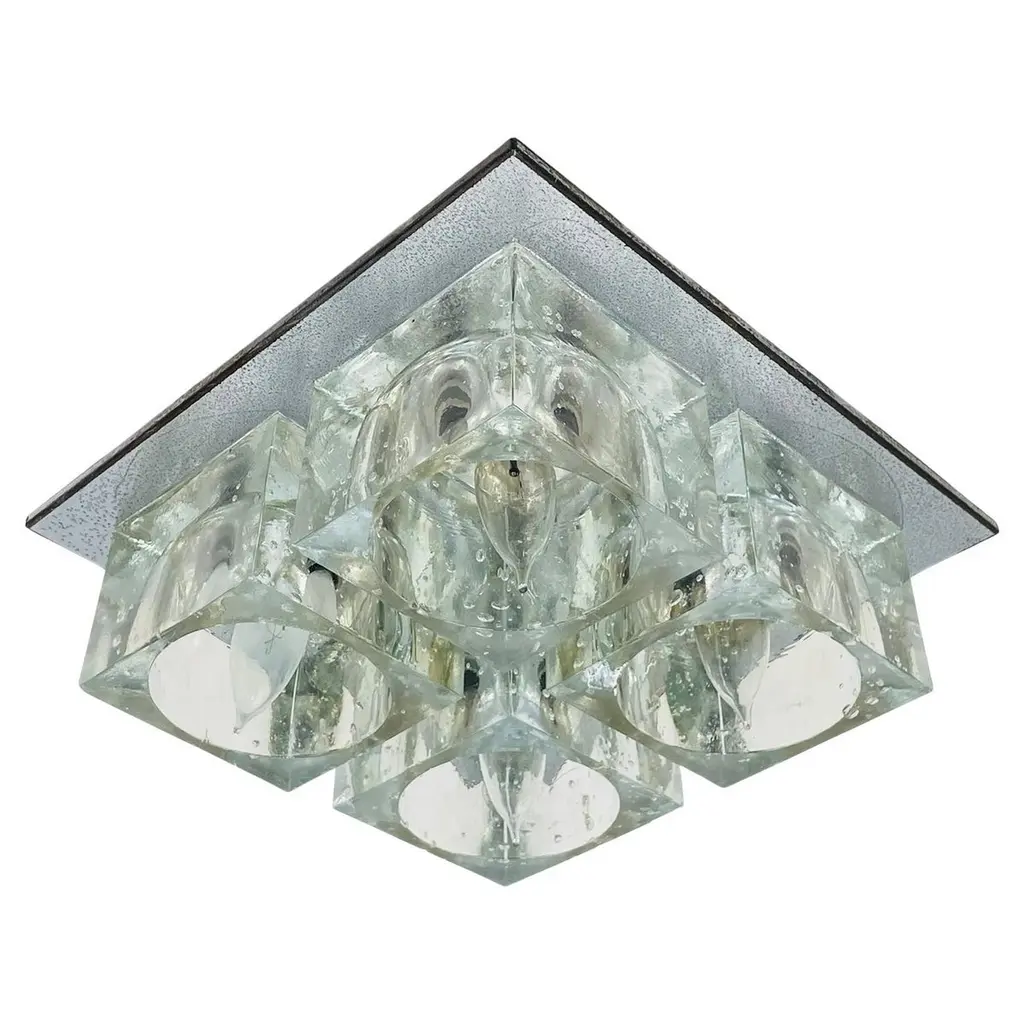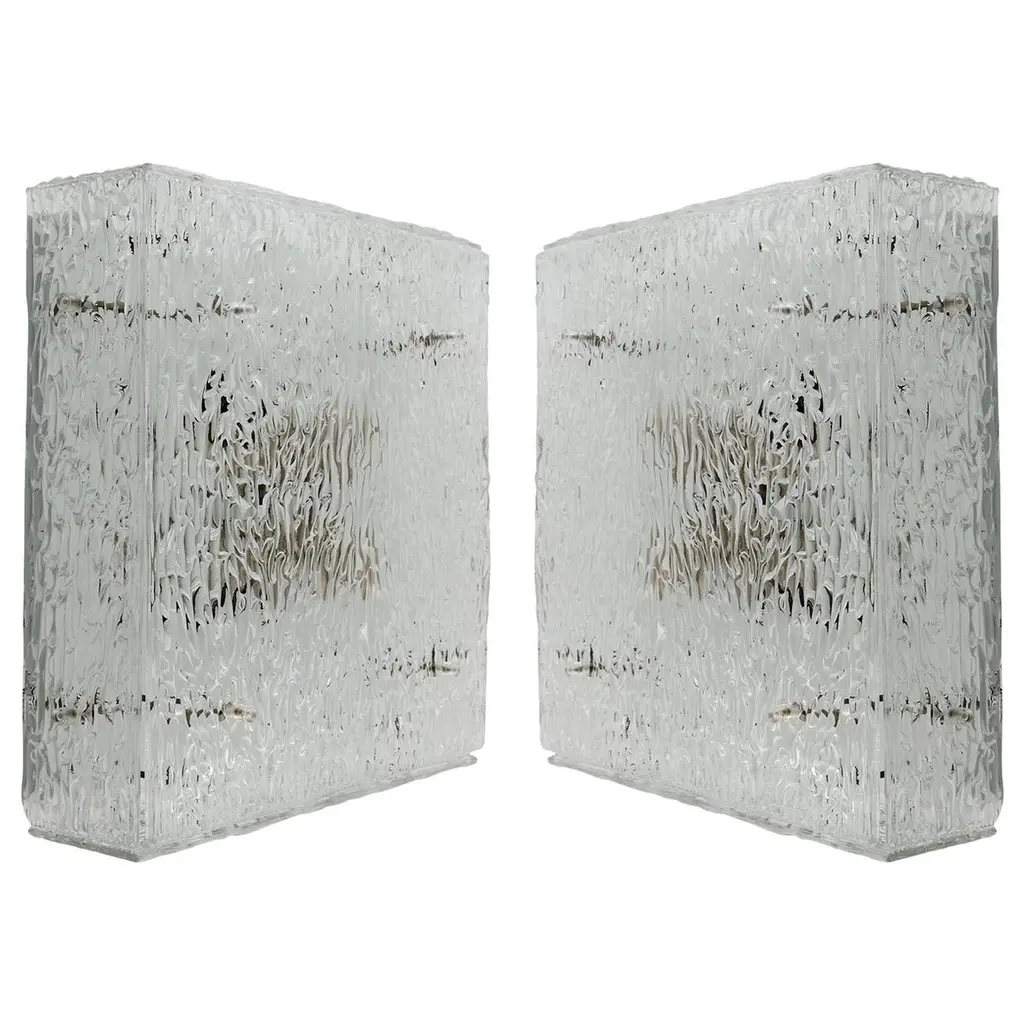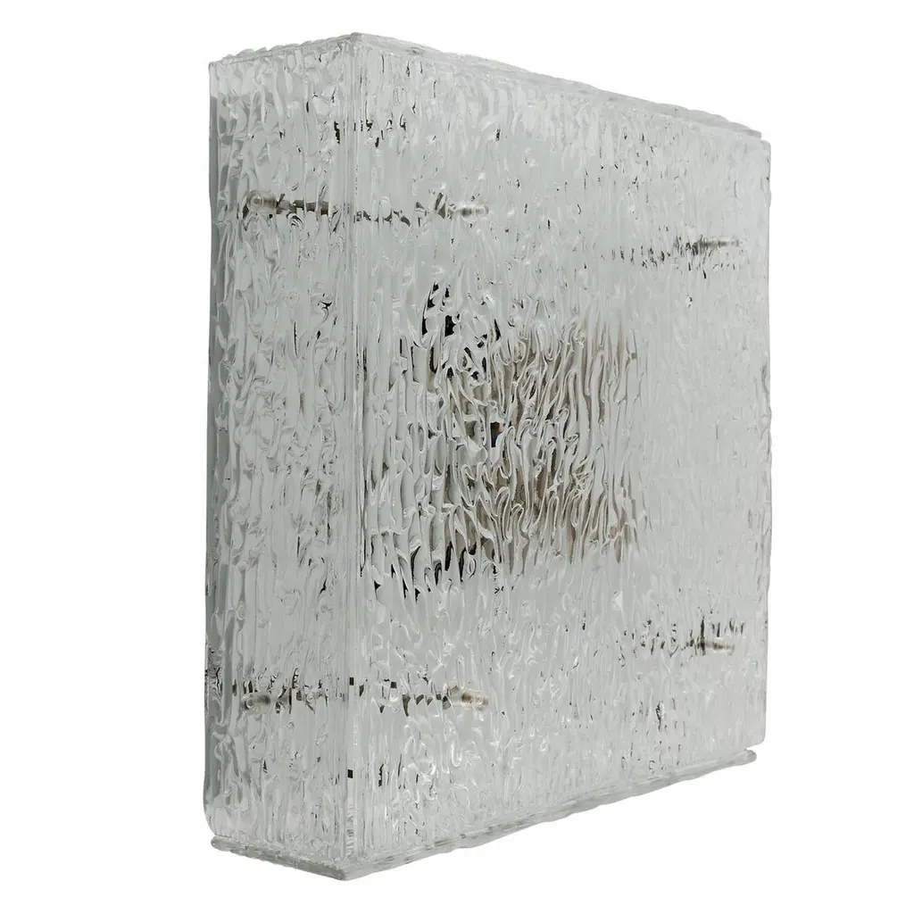 Square Kalmar Textured Glass Flush Mount Light Sconce 'Hippolyt', 1960, 1 Of 2
