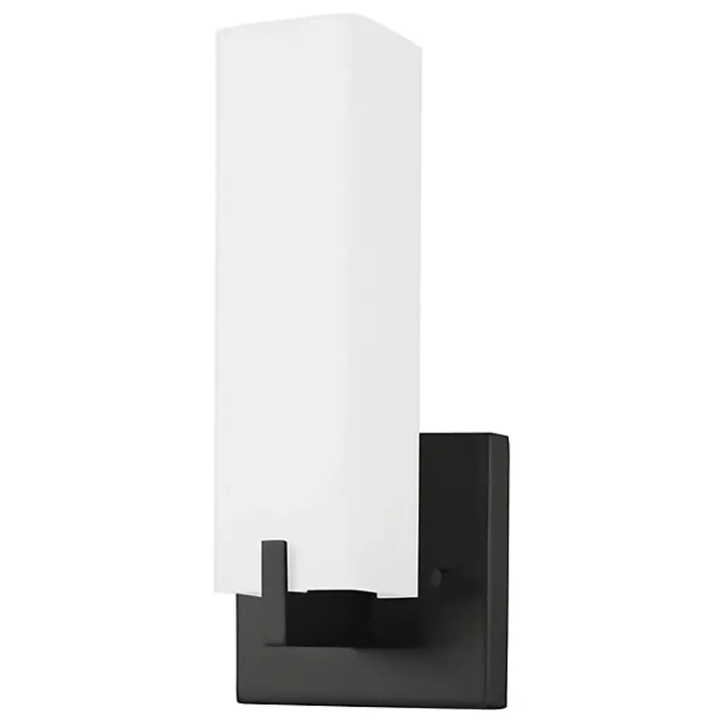 The LED Bath Wall Sconce from Minka-Lavery provides an enduring and coordinated contemporary character to indoor walls. A collaborating contrast of a matte steel structure and glossy acrylic shades, it is kept in place by a square wall plate. This simple structure seats a rectangular housing, supporting a vertical prism accented by a dark cap around damp-listed lamping, adding an even warmth to its environment.