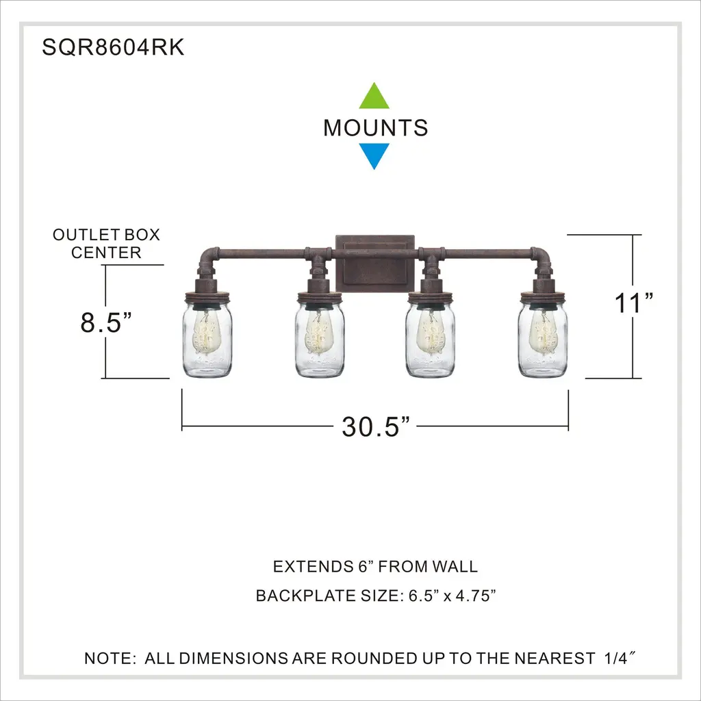 Squire 4 Light 31 Inch Rustic Black Bath Light Wall Light