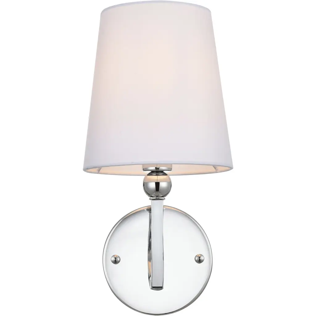 Add A Dash Of Sophistication To Your Walls With The St. Clare Wall Light. A White Half Shade Is Complemented By A Glamorous Polished Chrome Finish. Its Low Profile Design Is Also ADA Compliant.