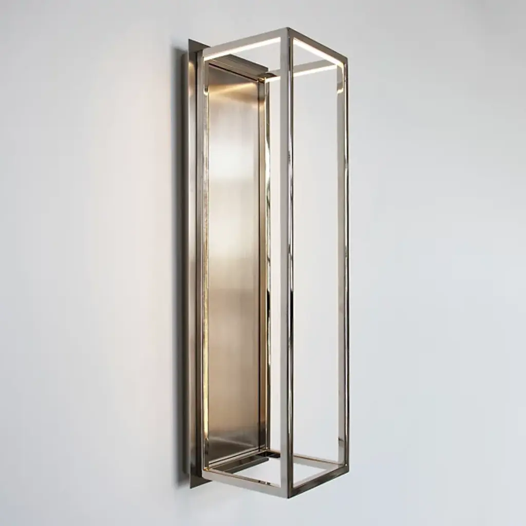 The Stack LED Wall Sconce from Ridgely Studio stacks pure lines and pure light in a versatile architectural design. The sconce’s crafted quality underscores creator Zac Ridgely’s artistic approach to his work. It looks tidy over a column or open wall, mounting with a low-profile steel backplate. When lit, this backplate acts as a canvas for the piece’s warm glow. This glow comes from an LED array that follows the inside edges of the robust steel framework. The indirect ambient light of the LEDs flows out softly, leaving behind a standout rectangular silhouette.