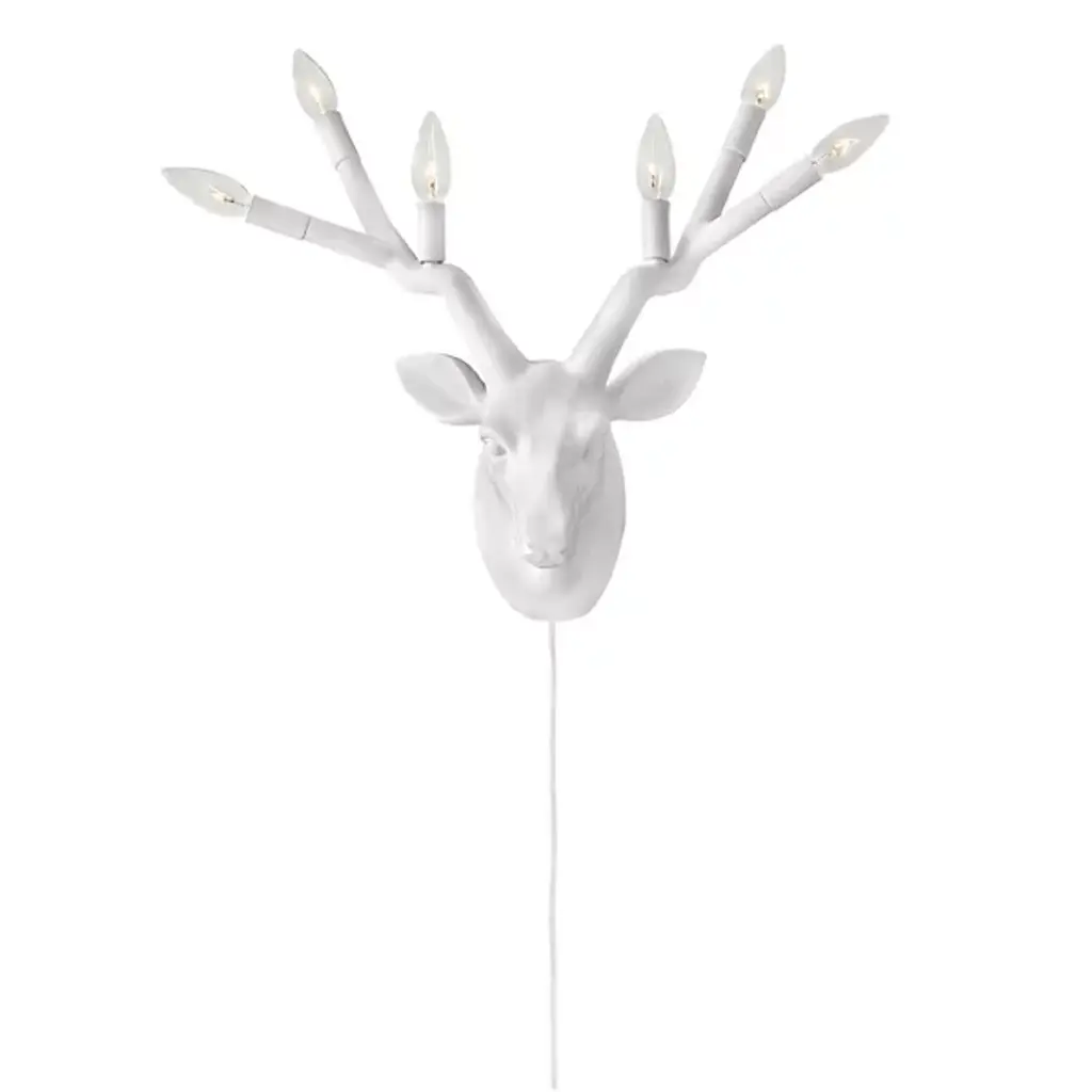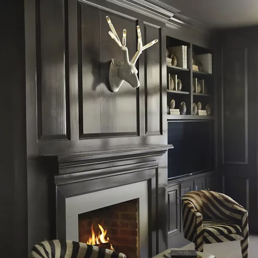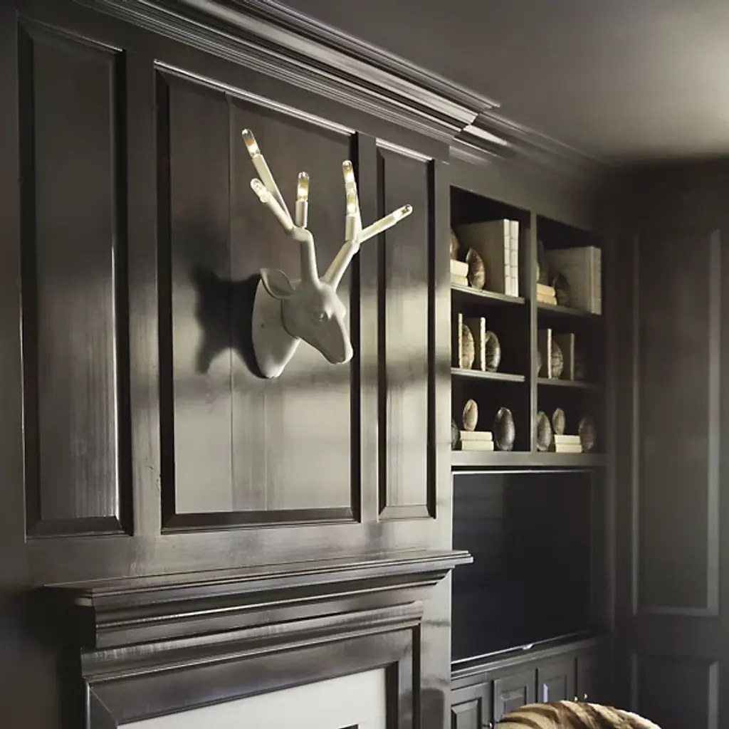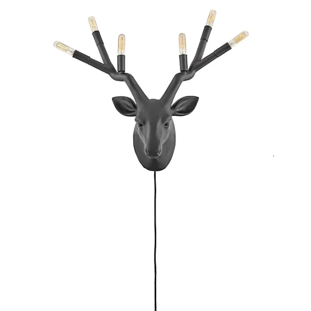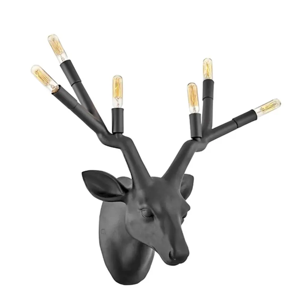 The Stag Wall Sconce by Hinkley Lighting brings a little fun to spaces while offering a functional layer of illumination. A playful and contemporary take on cozy lodge décor, the resin body of this sconce is shaped like a stag head and each branch of his antlers supports a single, exposed candelabra bulb. A uniform finish lends a tailored look to this design and the addition of vintage filament bulbs, which are sold separately, will add a charming touch to this cool piece.