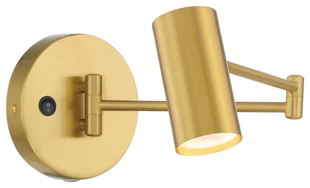 A sleek and smooth spotlight, anywhere you need it. The Stanly Wall Sconce by Dainolite features a cylindrical light head at the end of a short swiveling arm. This arm connects to a round wall plate, which can be hung with the included pin-up kit or hard wired to existing electrical. On either side of a bed, near a reading chair or workspace, this wall sconce is easily controlled with a switch on the wall plate.