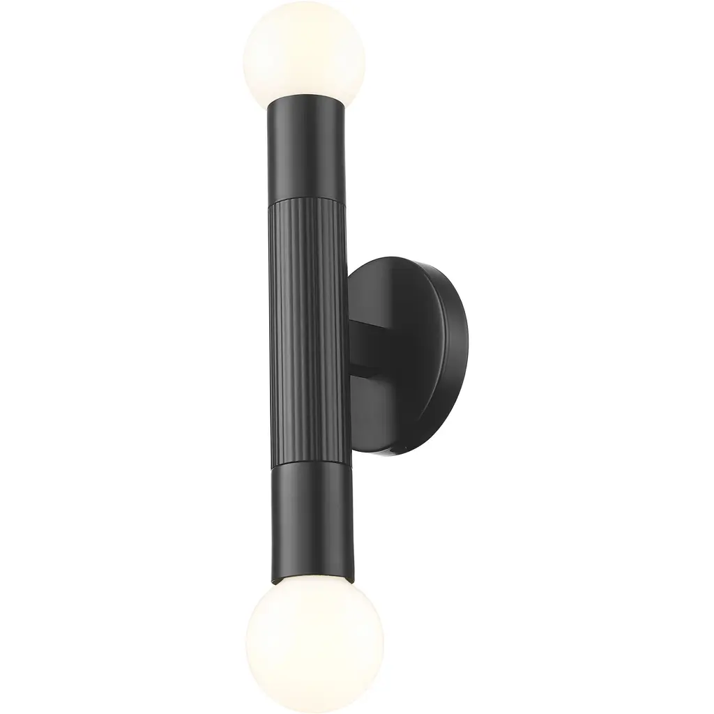 Two points of light meet a single, modern frame in this matte black sconce made for statement-making style. The perfect piece for framing mirrors or accenting long hallways, its a sharp and sophisticated lighting move.